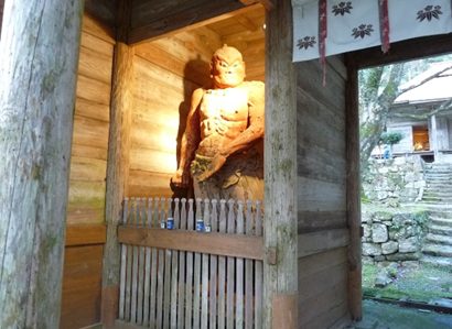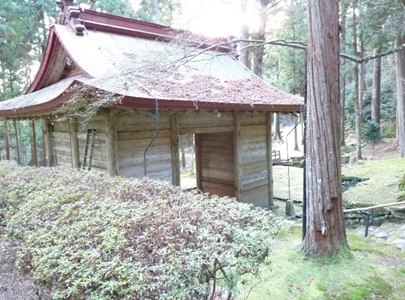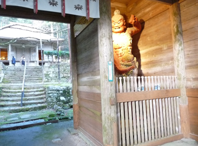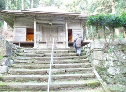 現在の本堂・二月堂は、約4百年前の仮堂であり、排水を考えた山型配石の参道の石垣は、延宝二年(1674年)に修復されたものです。また大講堂跡、三重塔跡は左高台に残っています。