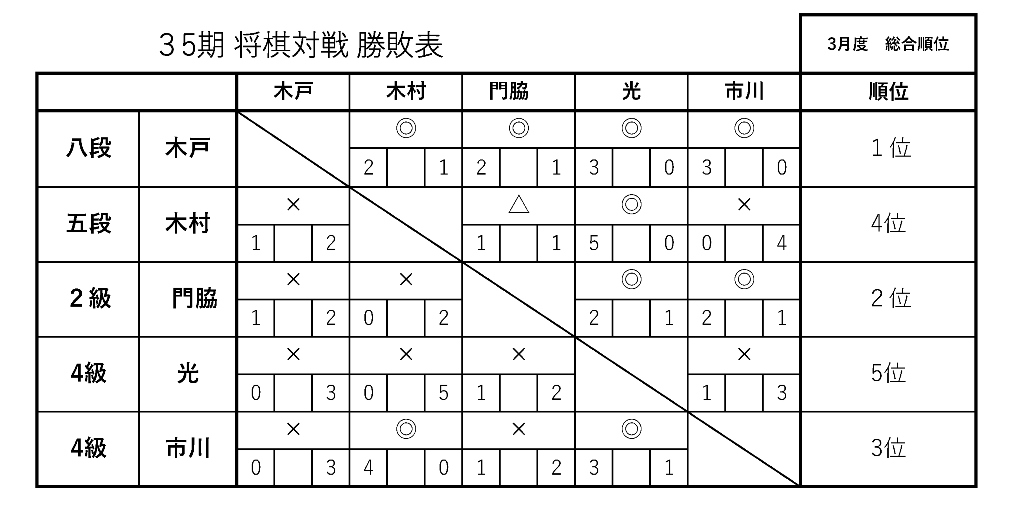 ◆将棋の部 第35期 対戦勝敗表 (2024年3月)