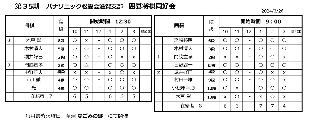 ◆第35期出欠表 (2024年3月)