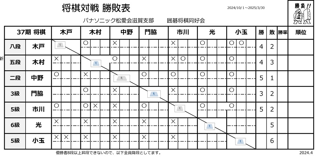 ◆将棋の部 第37期 対戦勝敗表 (2024年11月)