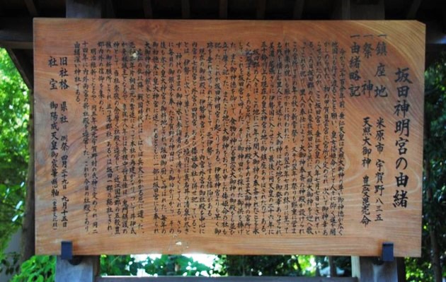 坂田宮は古くから「坂田大神宮」とも称し、近江国坂田郡の総社として信仰を集めました。伊勢神道五部書である『倭姫命世記』(やまとひめのみことせいき)によると、天皇の命を受けて伊勢の大神(天照皇大神)の鎮座地を求めた倭姫命は垂仁天皇8年に「甲可日雲宮(こうがのひくものみや)」から「坂田宮」に遷り、2年間奉斎したとあるが、社伝にその「坂田宮」の跡地に命の徳を偲んで祀ったのが坂田宮の起源であるとされている。元伊勢の伝承地であるが、また当地は伊勢神宮の御厨であった坂田御厨が置かれた地でもあり、その起源は倭姫命が来た時に献上された神田にあるといわれています。