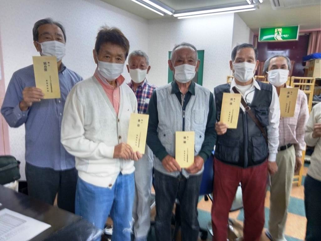 ①最初に第76期の表彰式を実施しました。 優勝は岡崎さんが3戦通して上位を確保されて獲得されました。