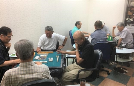 ④本日は17名がゲーム参加し、4卓を使って実施されました。結構激しい点の取り合いがあり、いわゆるドボン(点棒がなくなること。マイナス30以下の負け)が、9回もありました。 中にはドボンとトップが各2回という出入りの激しい人もいました。