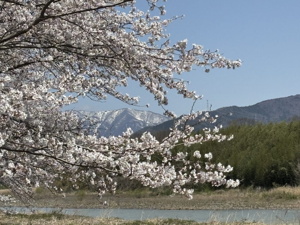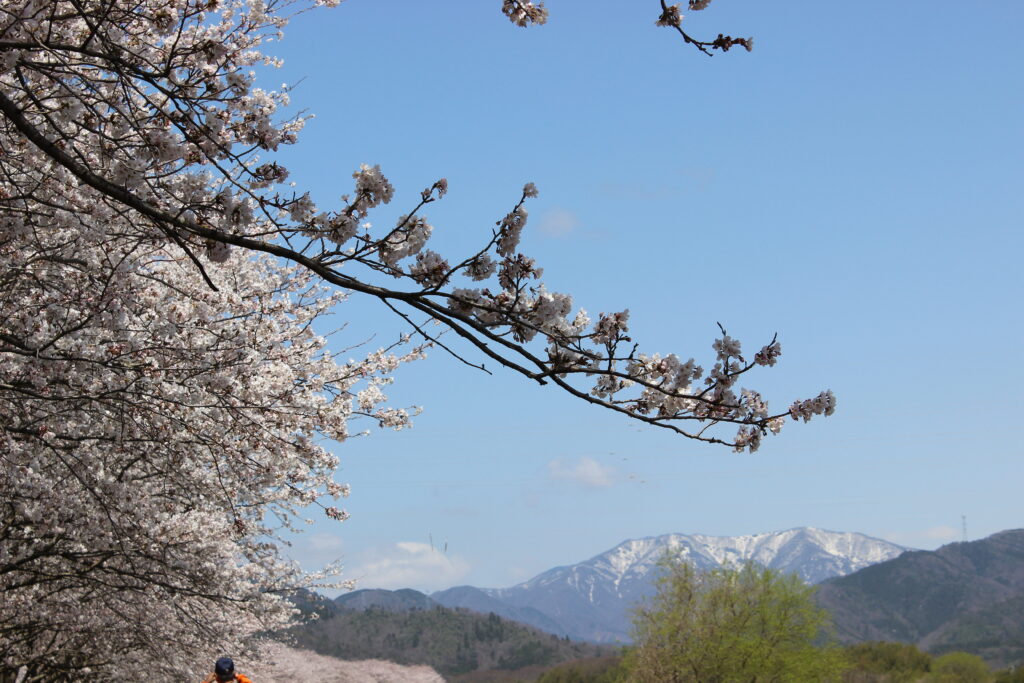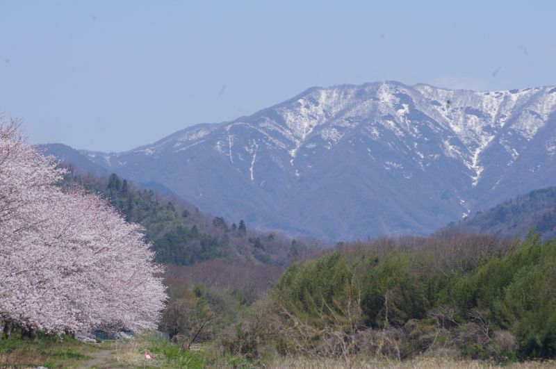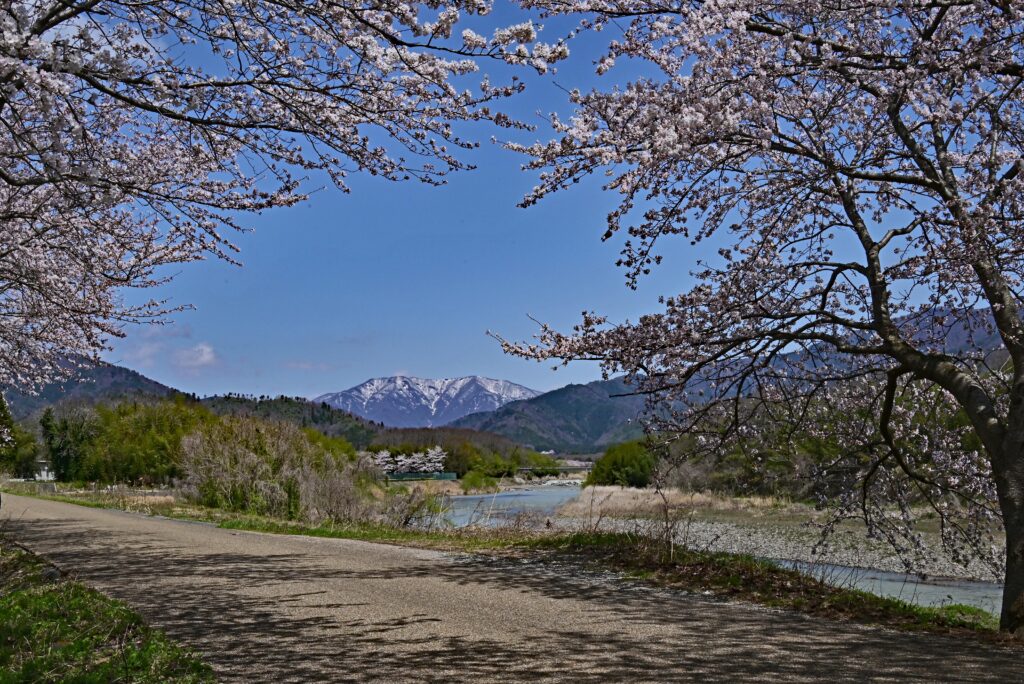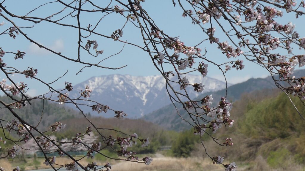 桜並木の後方に見える雪山を例会においては「白山」とお伝えしましたが、正しくは「横山岳」でした。