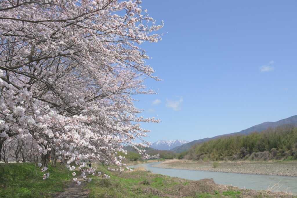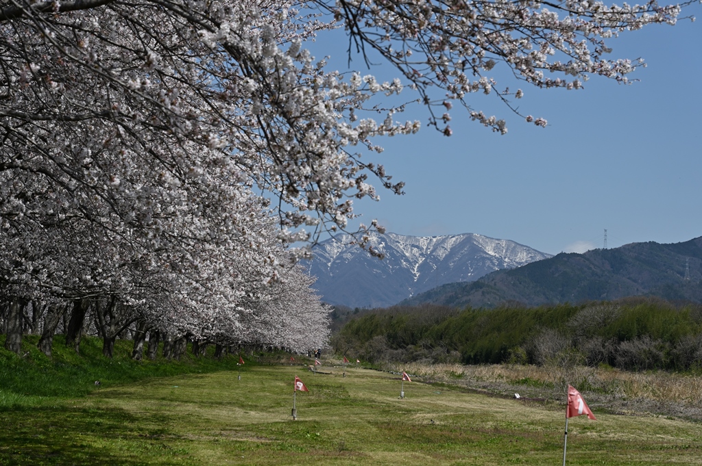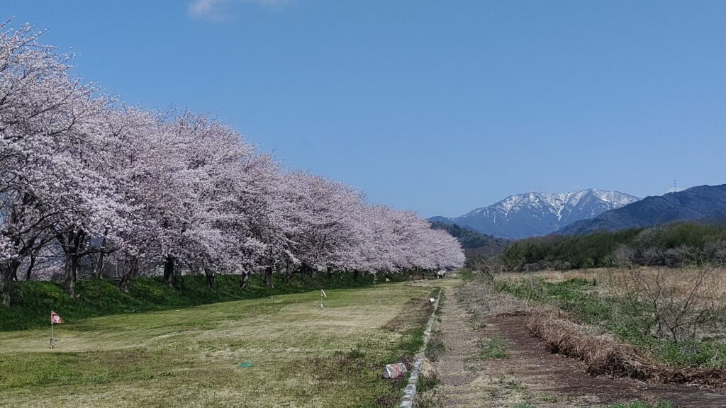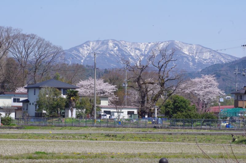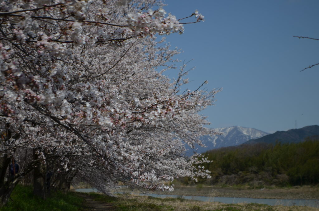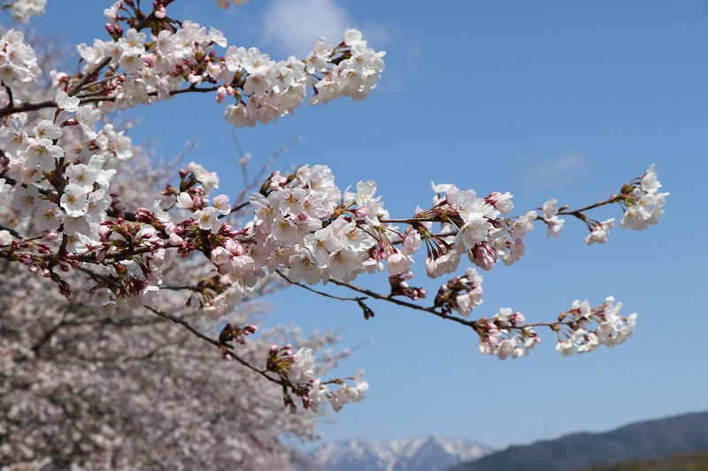 桜並木の後方に見える雪山を例会においては「白山」とお伝えしましたが、正しくは「横山岳」でした。