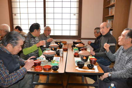 草津夢本陣休憩所の和室にて、新年会を兼ねて昼食(近江牛すきやき御膳)を戴きました。