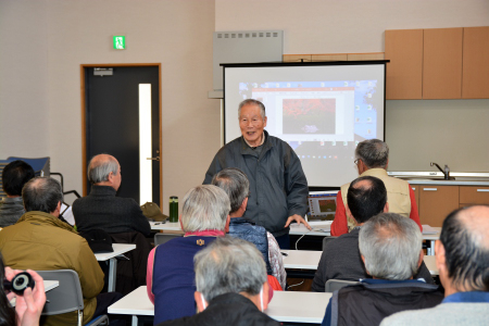 ・昼食後は、草津川跡地公園の教養室に移動して写真教室を開催。最初に、城山会長によるワンポイントレッスン
