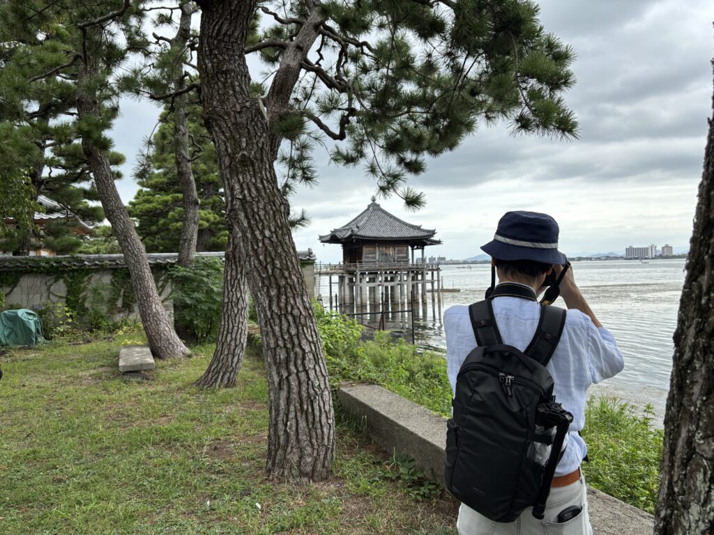 浮御堂で集合写真撮影後、浮御堂周辺を撮影