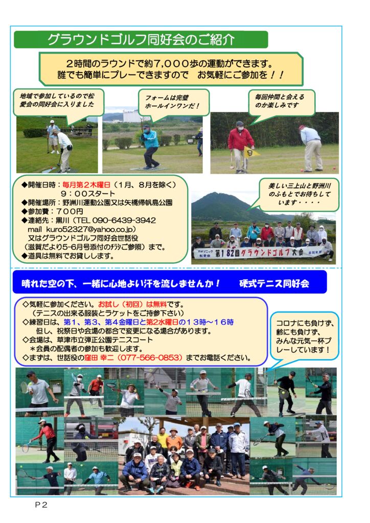 2021.06.30 広報, 滋賀だより 滋賀だより 2021年 7-8月度 滋賀だより 2021年7-8月号 2019年4月以降の滋賀だよりはこちらから 2009年4月~2019年2月までの滋賀だよりはこちらから 投稿者: tomita 広報, 滋賀だより コメント: 0 第159回 滋賀パソコンクラブ前の記事 湖東・湖北グラウンドゴルフ愛好会 2021年6月 第3…次の記事