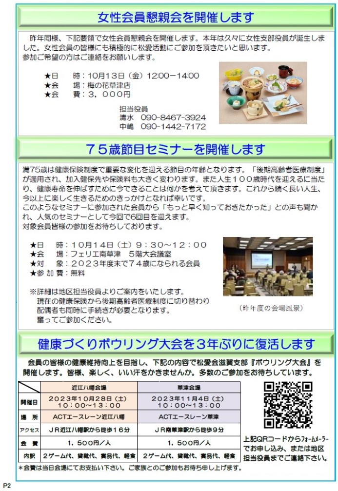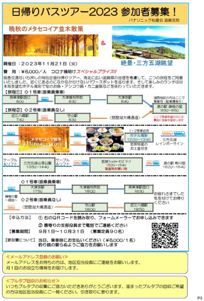 2023.09.1 案内 滋賀だより 2023年 9-10月号 滋賀だより 2023年9-10月号 2019年4月以降の滋賀だよりはこちらから 2009年4月~2019年2月までの滋賀だよりはこちらから 投稿者: hanni 案内 コメント: 0 2023年度日帰りバスツアーのお申込み受付します。前の記事 健康づくりボウリング大会を3年ぶりに復活します。次の記事