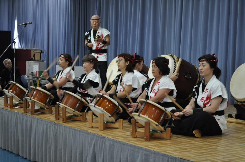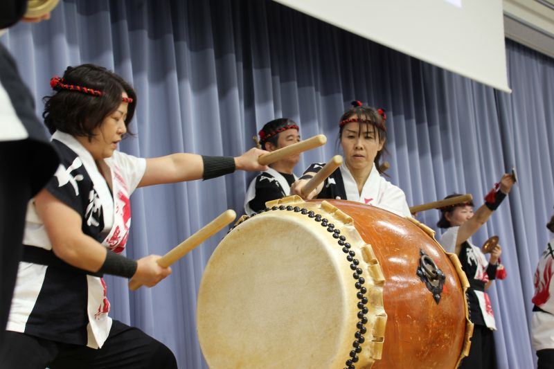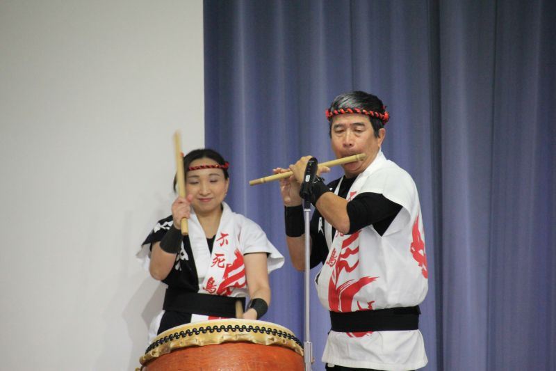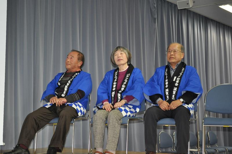 1) 地元、大津市田上地区で活動されている和太鼓集団「太神太鼓フェニックス」による、お腹にも響く力強い太鼓の演奏を聴き、また太鼓に合わせ参加者全員で手拍子をして盛り上がりました。