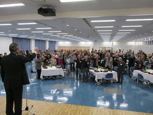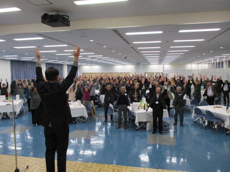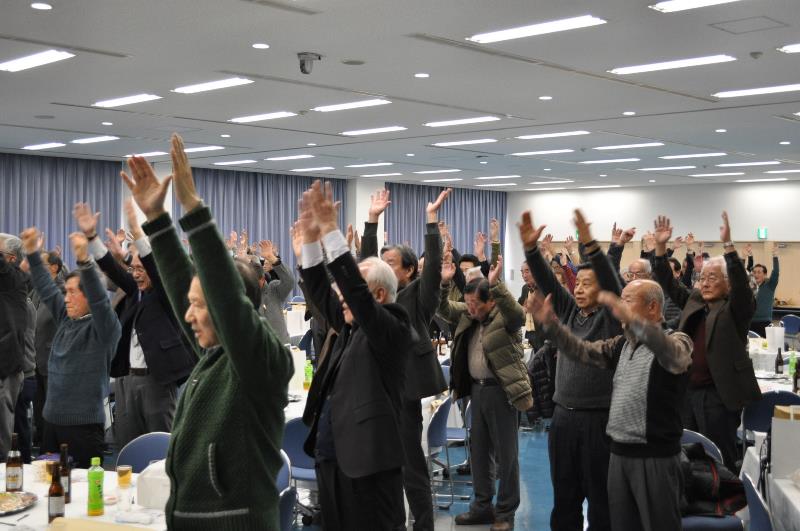 4.中締めとして松愛会 副会長の脇濱さんによる万歳三唱で2020年の新春懇親会を終了しました。