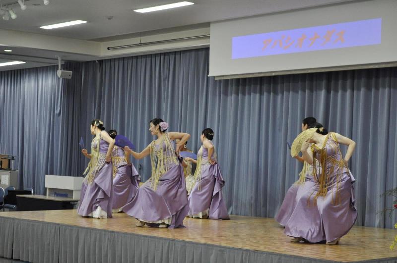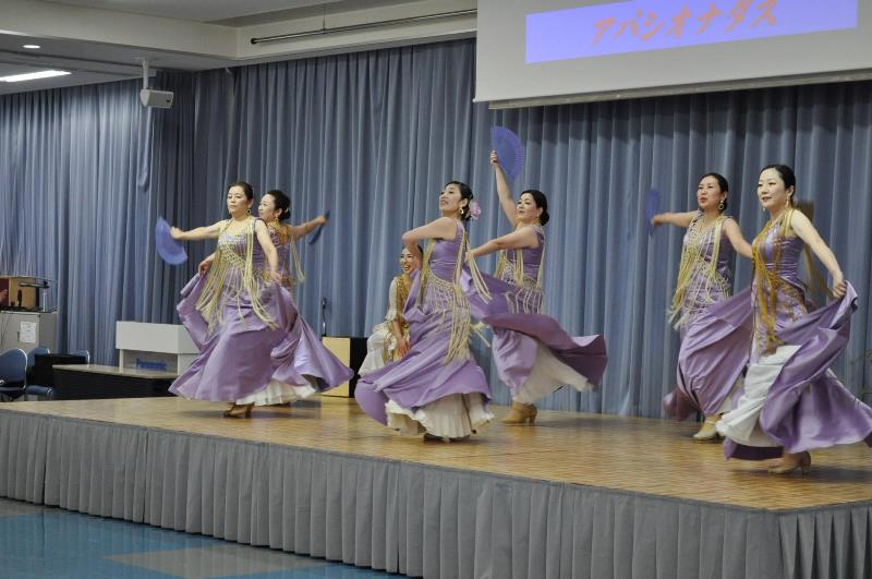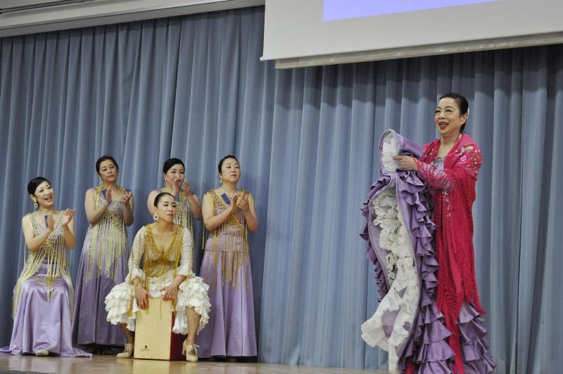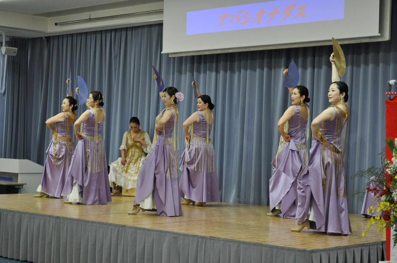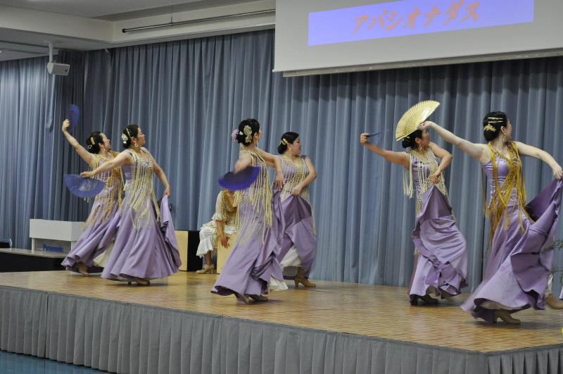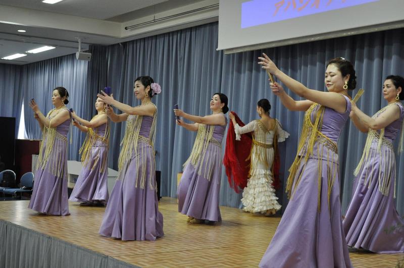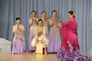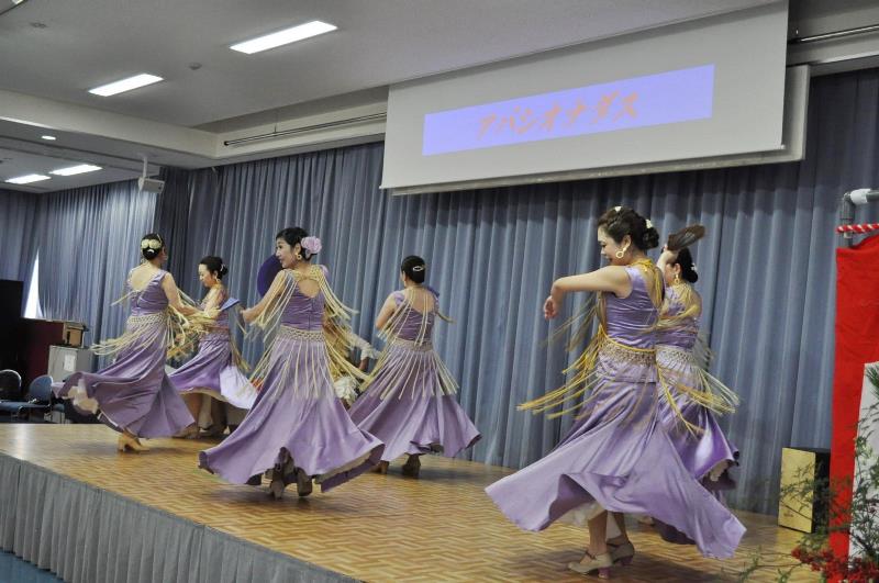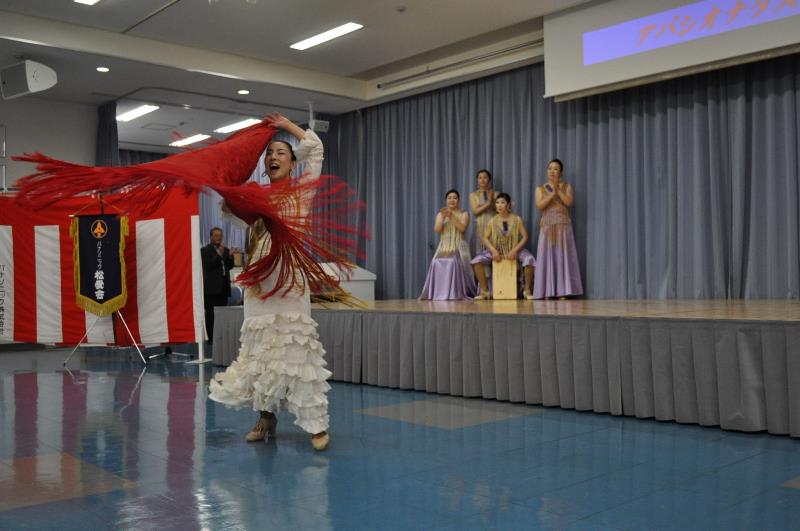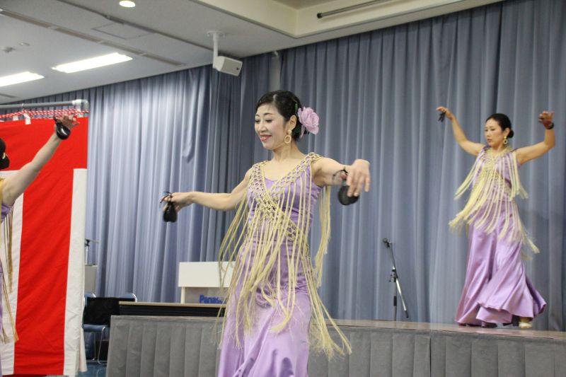 2)他の松愛会支部でも演舞され、好評と聞いていた寝屋川市のフラメンコグループ「アパシオナダス」に出演していただき、華麗な衣裳、賑やかなカスタネットとカホンの演奏、そして情熱的な踊りを楽しみました。