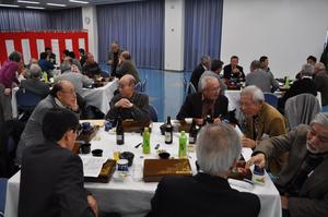 2.会場は17テーブルを設け、1テーブル6~8人でセットし5列編成で配置しました。