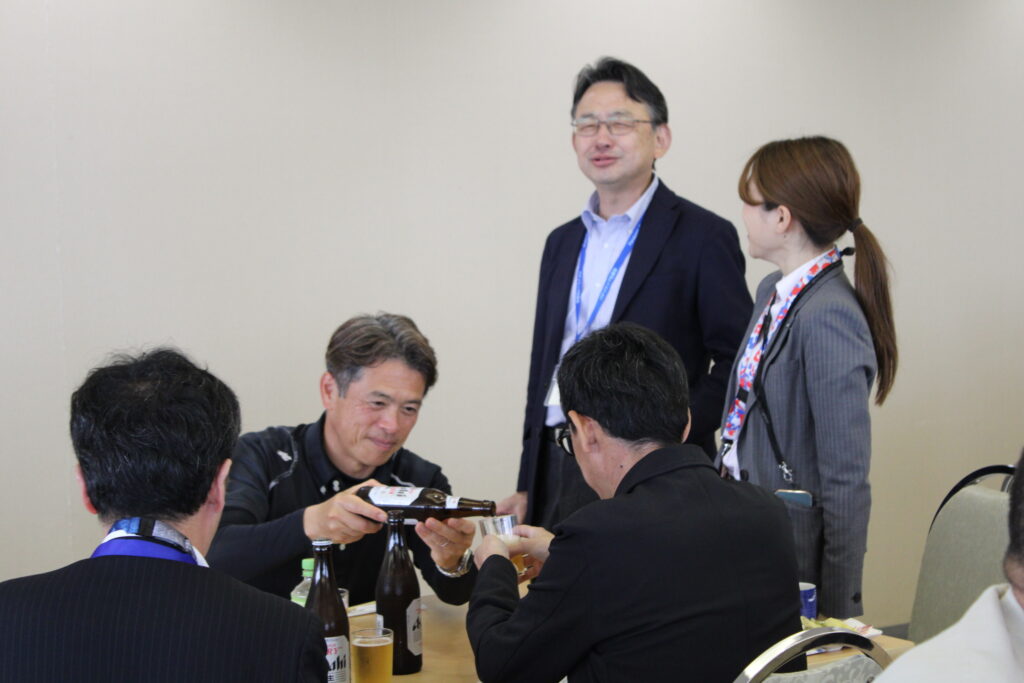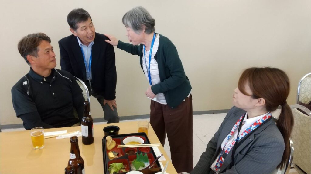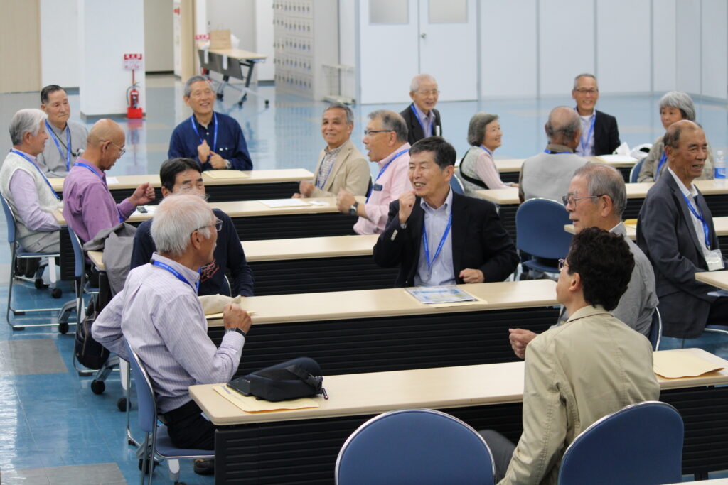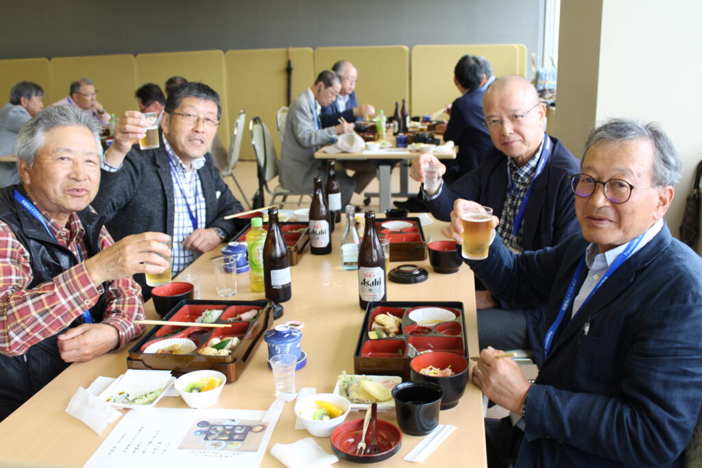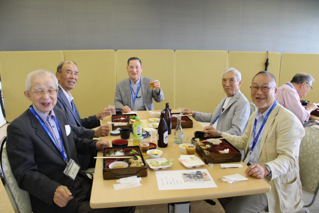 場所を特別食堂に移動して実施。今年は座席を出身事業場別にして旧交を温めて頂けるようにしました。