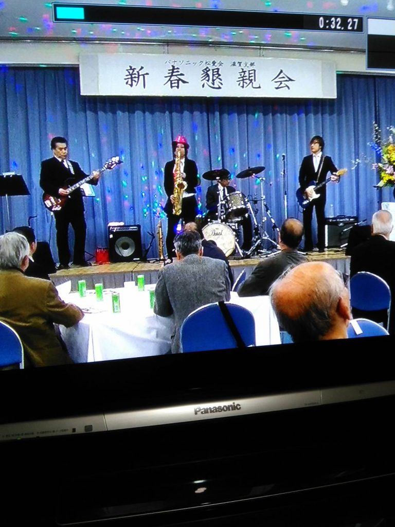 この写真は松愛会滋賀滋賀支部に於ける恒例の新春懇親会(2015年1月24日)に招待され先輩方のご存じのオールディズの曲や馴染みの昭和歌謡を演奏し楽しい思い出です。