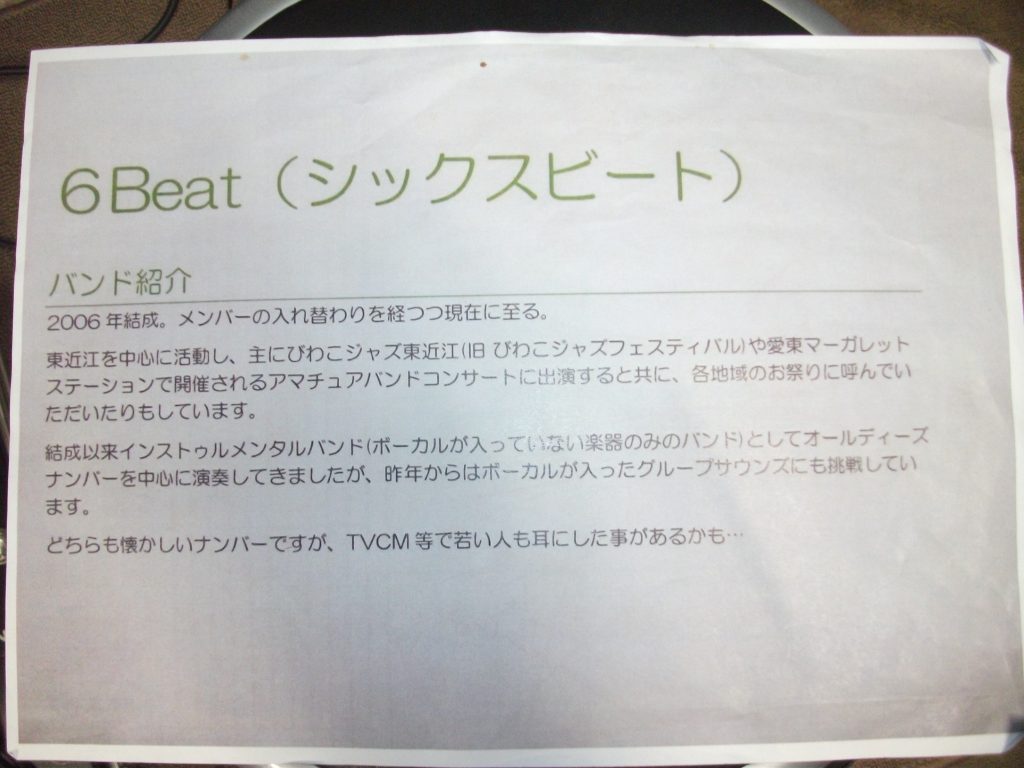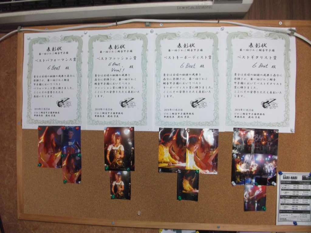 2006年結成から毎年数々のイベント出演を重ね4年間腕を磨き滋賀県最強を賭けたびわこ軽音甲子園頂点の決戦に挑み見事頂点賞に輝き、更に部門賞も数多く受賞し小さい枠ですが地元新聞にも掲載されました。 この実績を皮切りに各種イベントに出演しました。