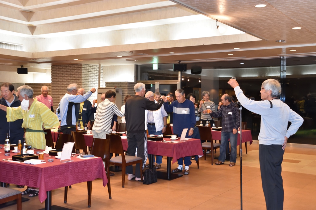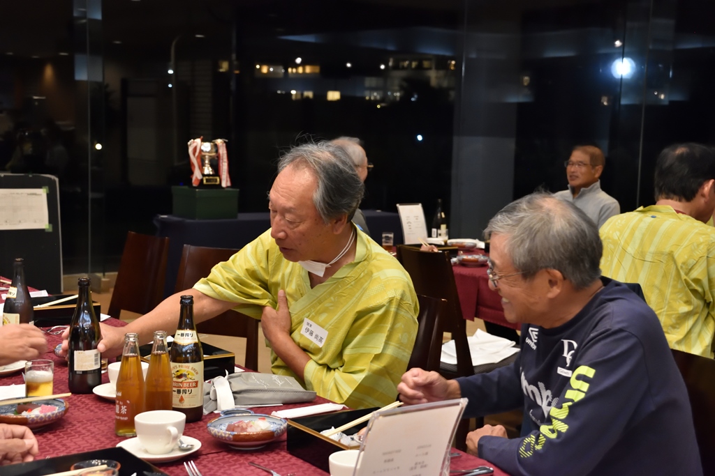 ◆懇親会では、チーム対抗団体戦の結果発表と優勝カップ授与、10回出場者の表彰、今回初参加の方の紹介後、ビンゴゲームとカラオケ大会で多いに盛り上がり楽しい懇親会になりました。