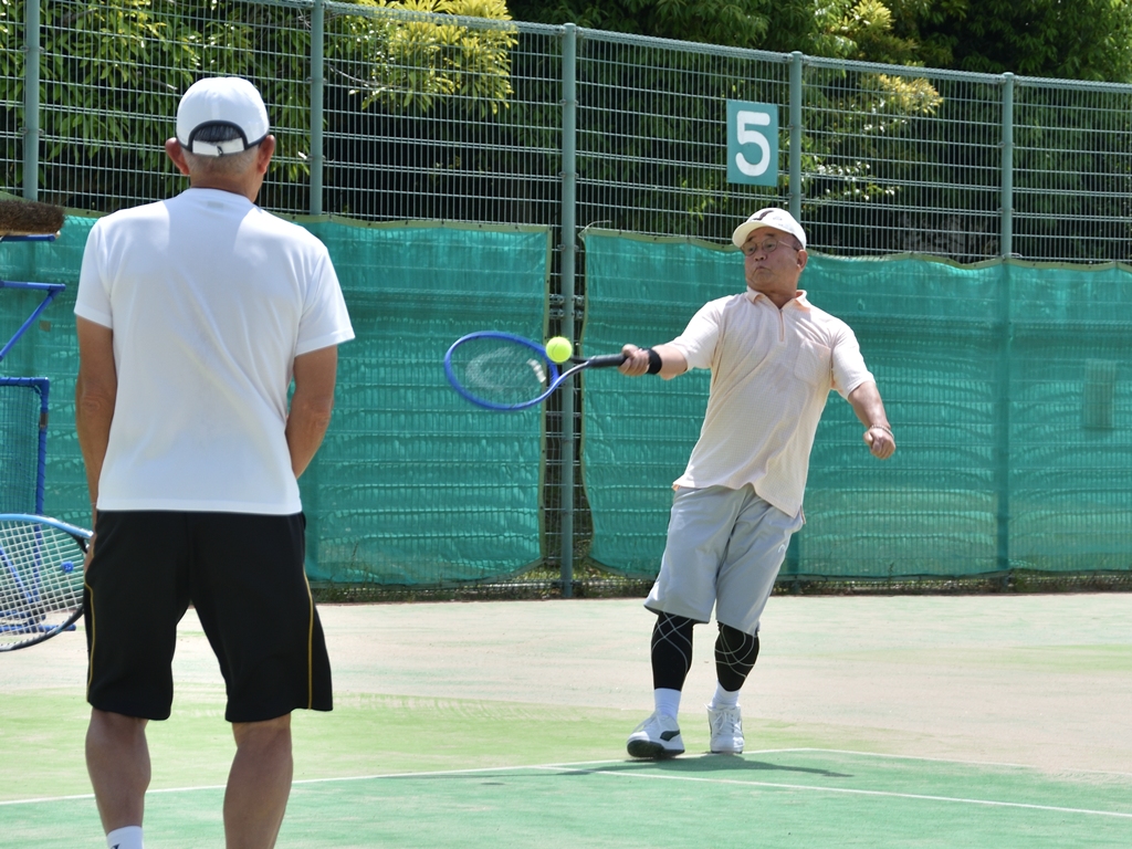 ・関西地域の松愛会テニス参加者72名が、大石テニスコートにあつまり、関西Aチーム、関西Bチーム、京都南チーム、兵庫チーム、滋賀チーム