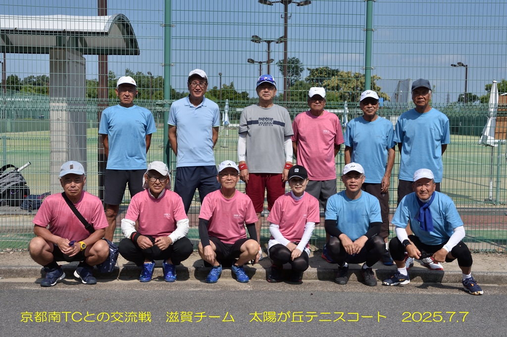 ・京都南チーム12名と滋賀チーム12名が、太陽が丘テニスコートにあつまり、団体戦を行いました。