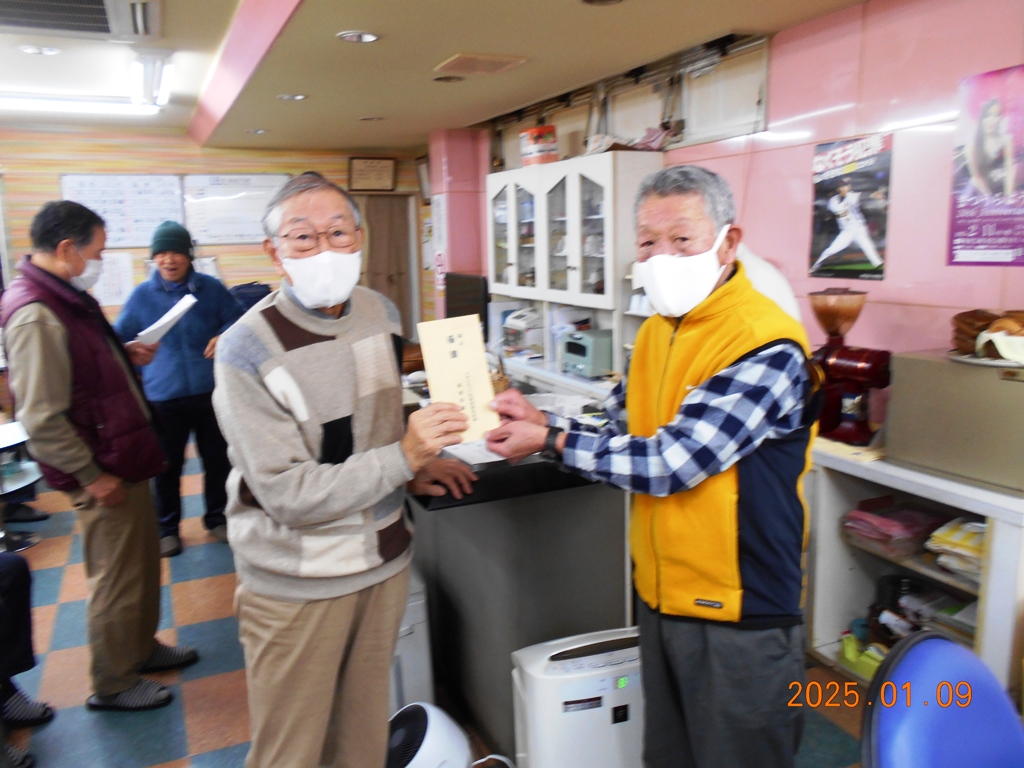 ①最初に湯井会長より年頭の挨拶の中で、メンバーが減少していることから新規メンバーの勧誘依頼がありました。