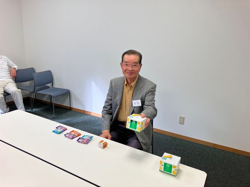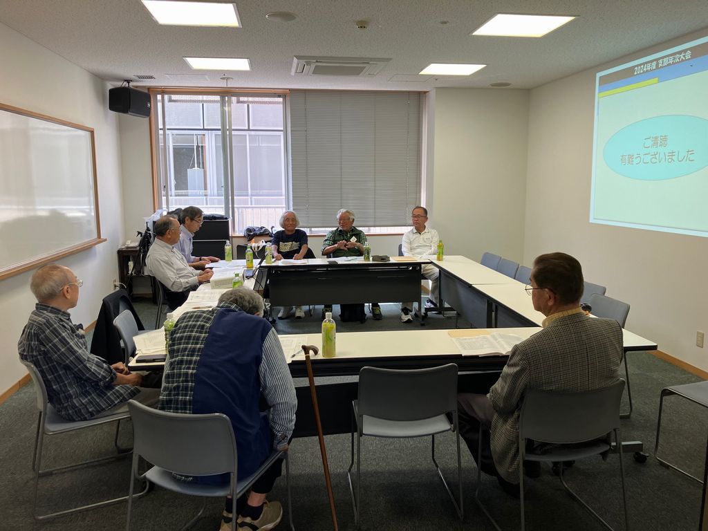参加された方々は八木支部長および浅海分会長からの報告や連絡に質疑等行いないました。23年度の健康マイチャレンジ記念品を渡部さんに贈呈しました。 宮川さんが第1部のみで帰られるということだったので、お一人のみ近況報告をしていただきました。ずっとお元気だったのに今回は手術をされて経過観察中の話をされたのが少しショックでした。