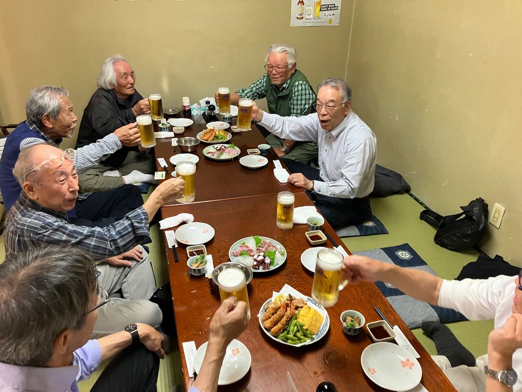 第2部はクラフトビール工場「GROUNDTAP BREWERY」の立ち飲み屋で軽くクラフトビールを一杯ひっかけて勢いをつけて、第3部の山長に18時に入店し、ワイガヤ懇談会が始まりました。ビールから途中で日本酒に変えておいしく食べ飲みして、大いに盛り上がり解散をしました。