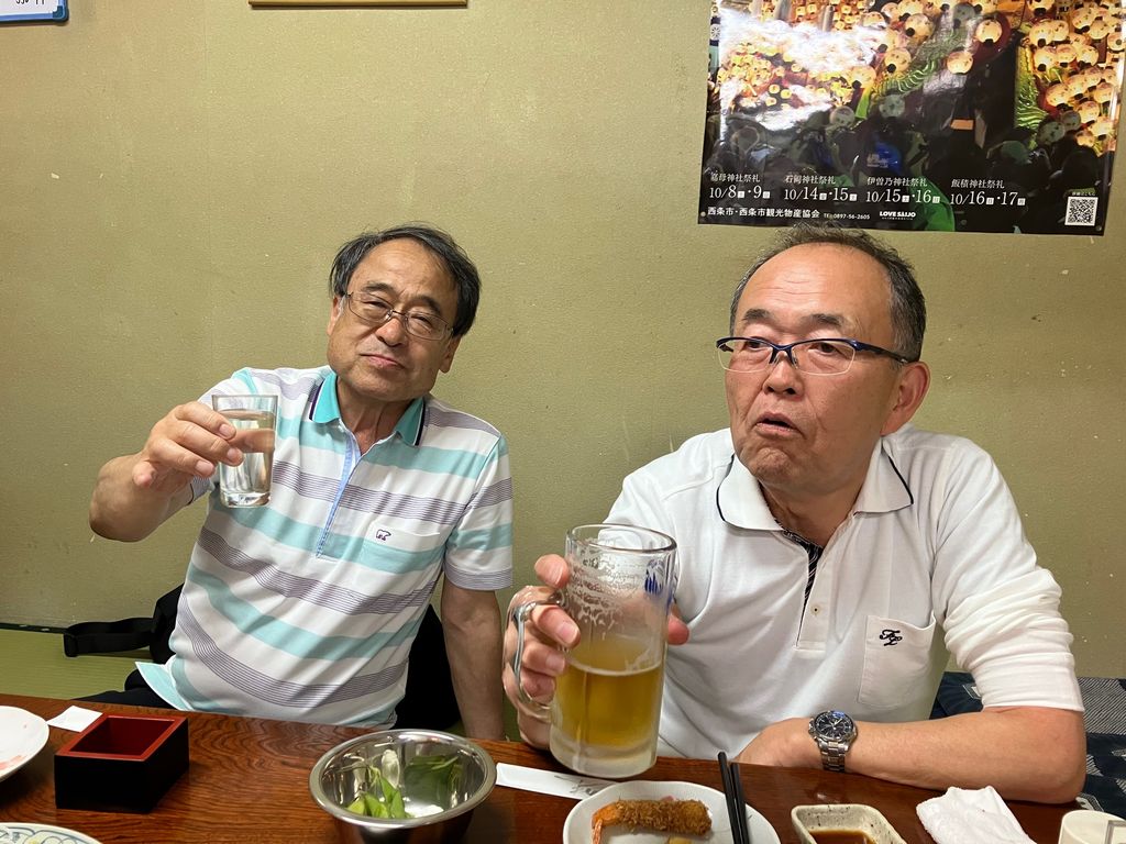 泊り予定の八木支部長と浅海分会長を地元の高田地区委員が案内して3人だけカラオケスナックに行って、たくさん歌い西条の夜を満喫しました。