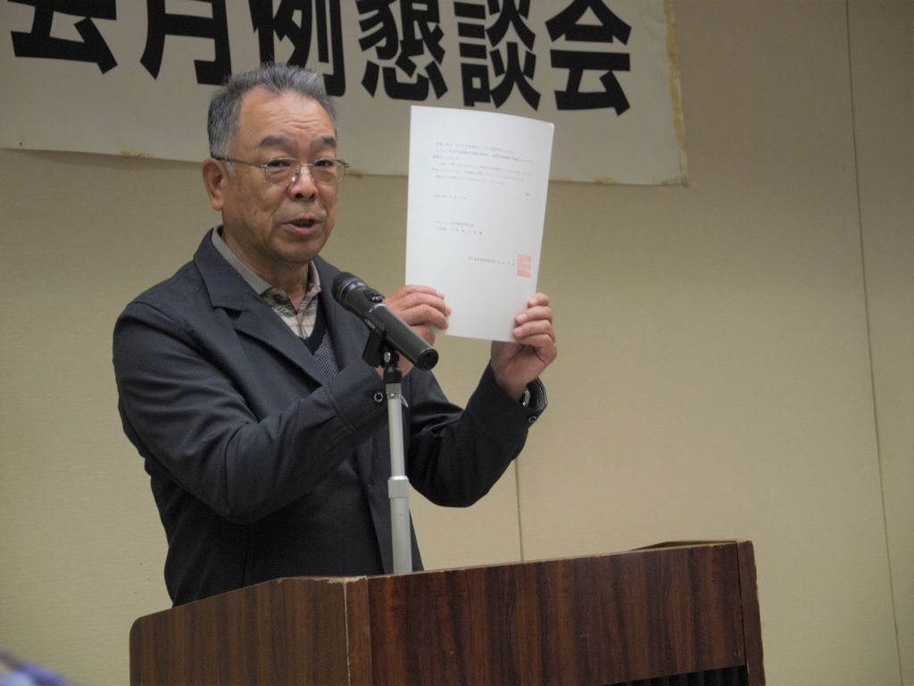 □脇会員が病気療養から復帰、本人より挨拶を頂きました