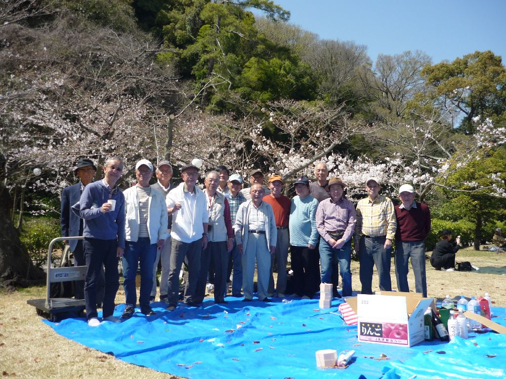 ・今年の桜の開花は暖冬の影響により、例年より早いという事前の開花情報により、4月1日の開催は満開を過ぎた花見になるだろうと思い込んでいました。ところが全国的に寒の戻りの影響で、開花時期が例年より大分遅れた為、4月1日でも桜はやっと咲き始めたという状況での開催となりました。参加者も昨年より1名増えて17名の参加をいただき、心配された天気も問題なく絶好の花見日和となりました。