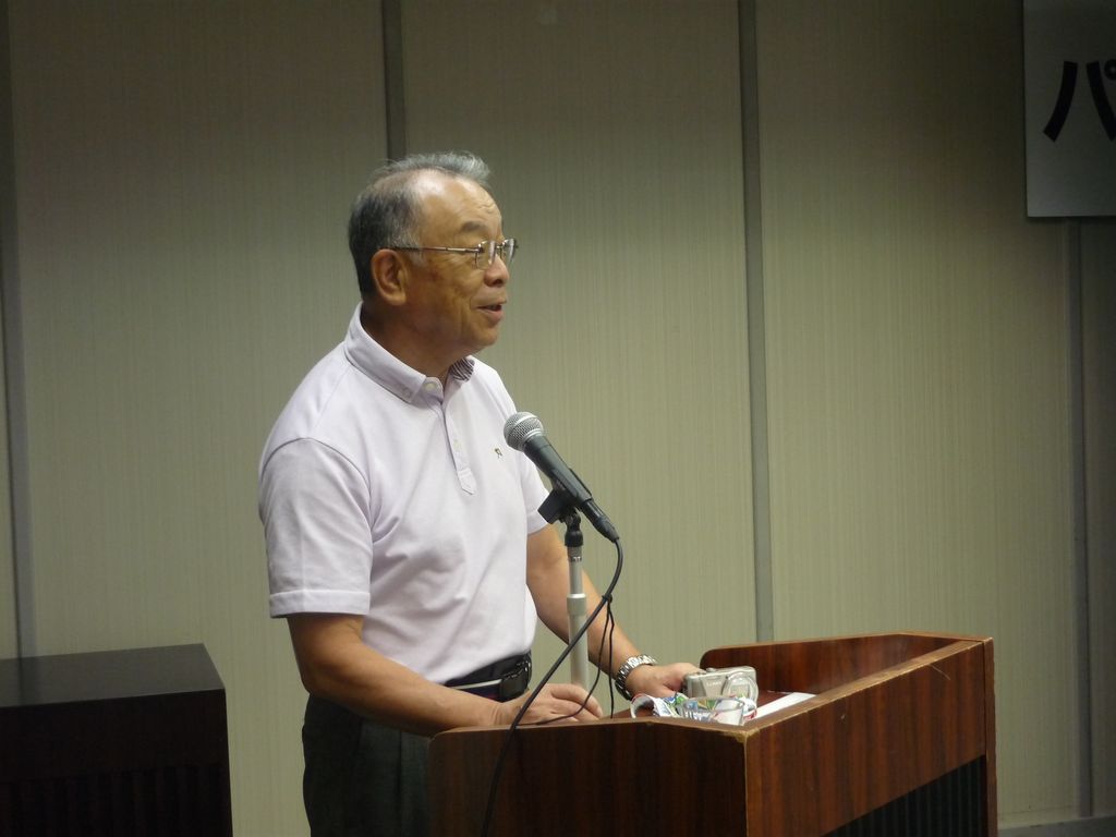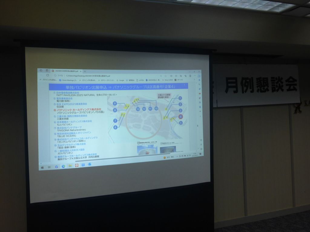 続いて八木支部長の挨拶の後、スクリーンを使って①関西万博とパナソ