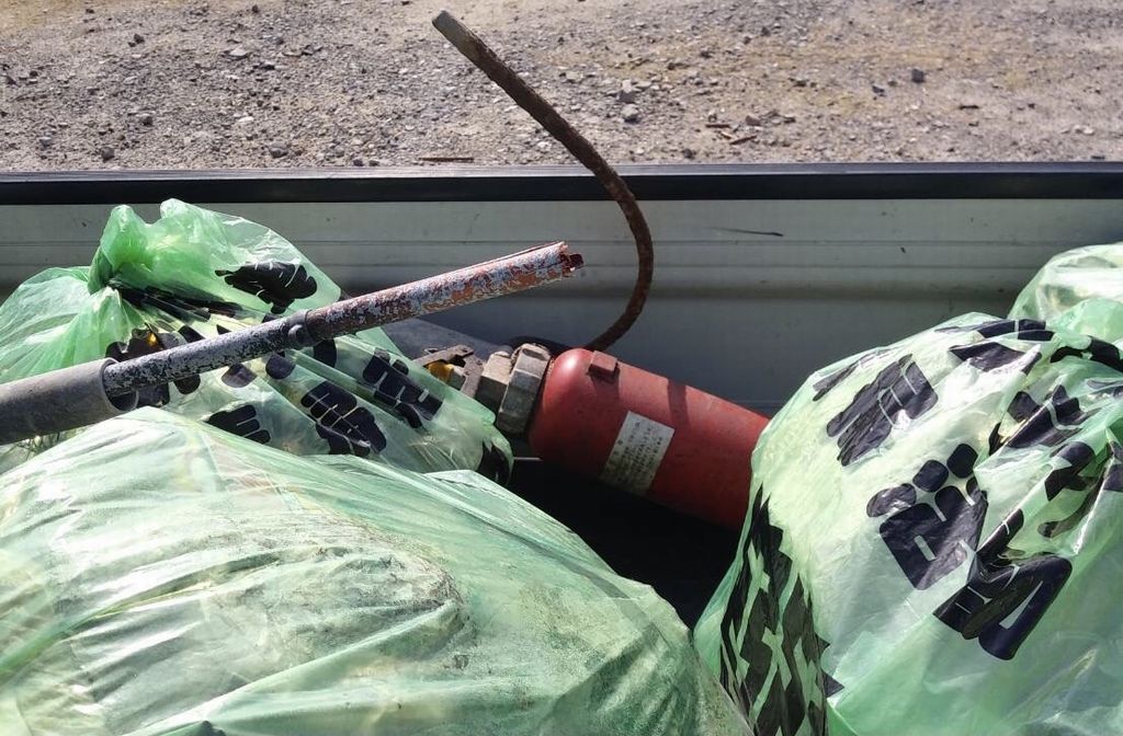 4.回収後、ビン缶と可燃ごみに分別作業実施 (消火器が落ちていて驚きました)