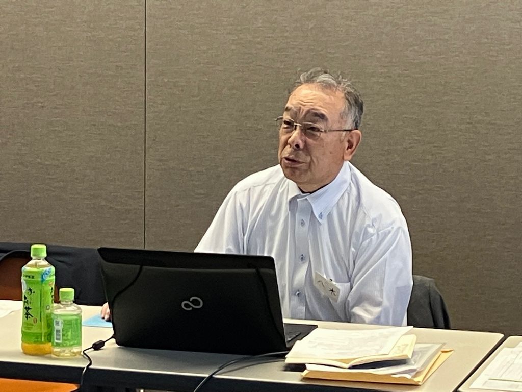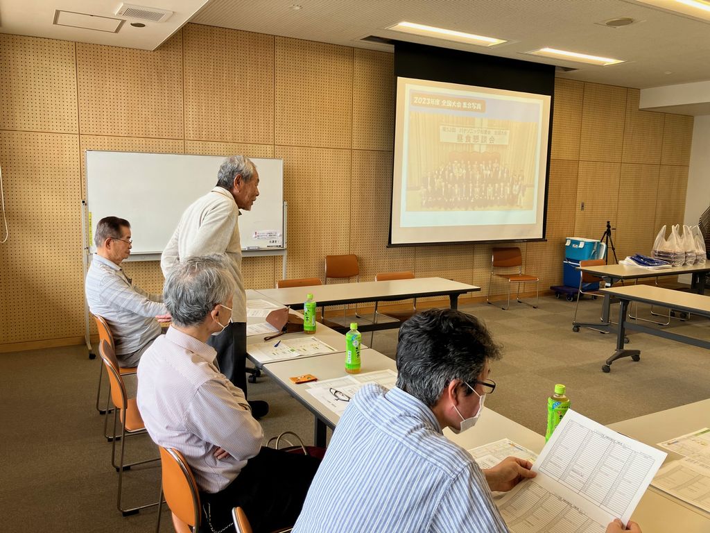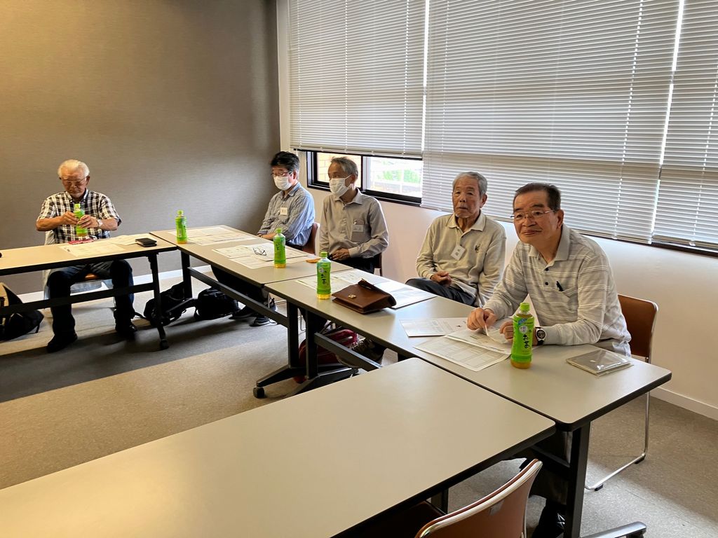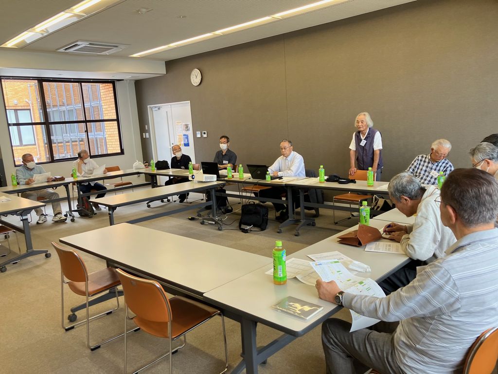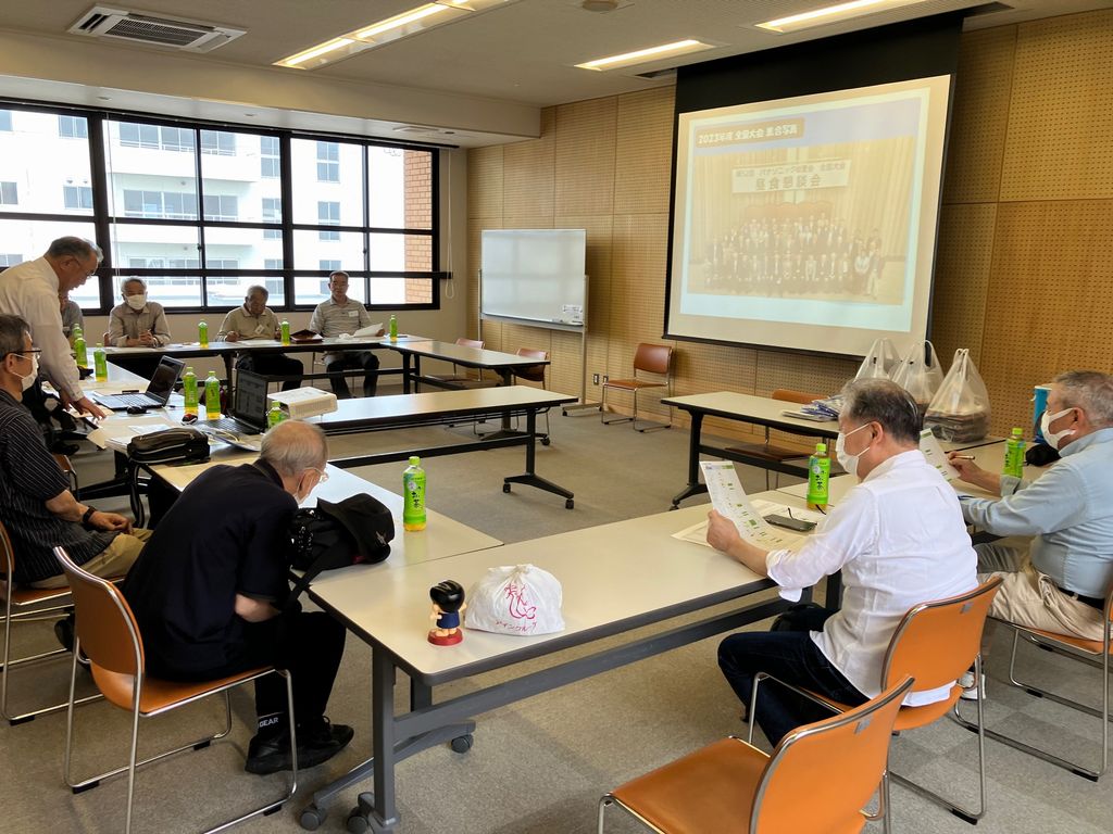 開会宣言のあと、久しぶりの方や初めて参加の2名もいらっしゃったので自己紹介からスタートしました。短めに終わるかなと思っていましたが、4年ぶりや初めて会う顔ぶれだったので、力が入っての紹介の方もいらっしゃいました。新任の地区委員として今回参加の高田さんから挨拶もしていただきました。