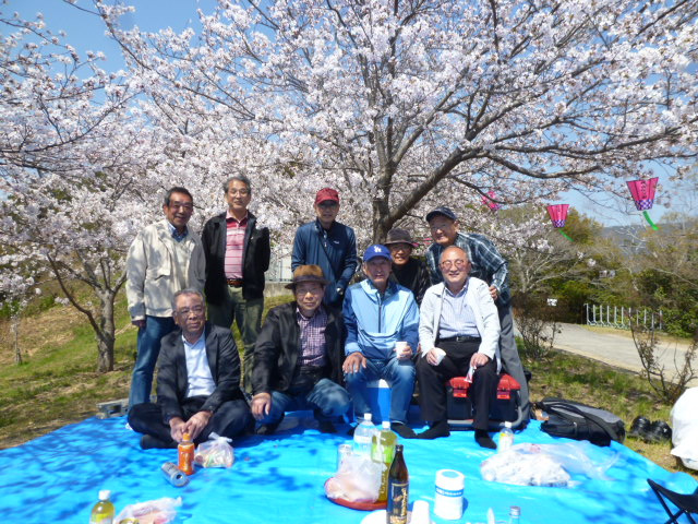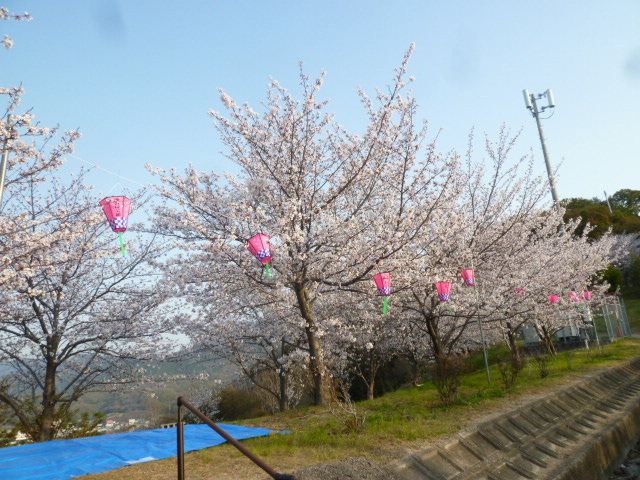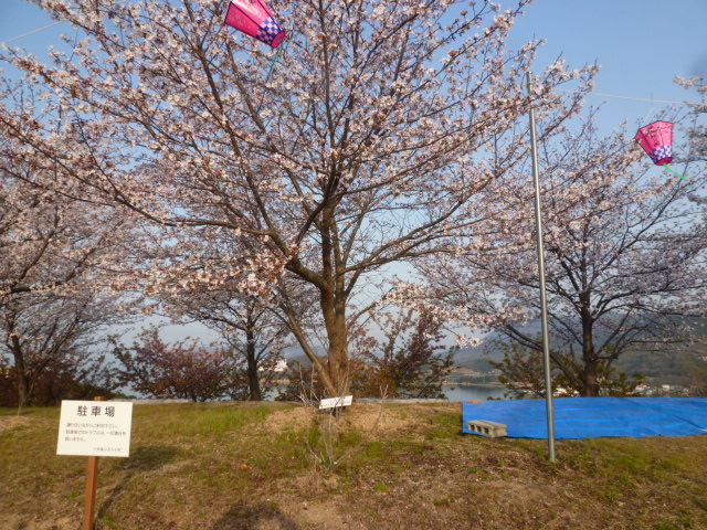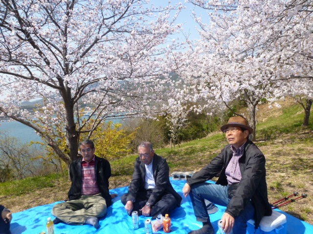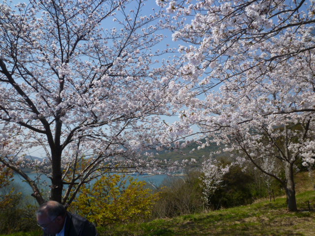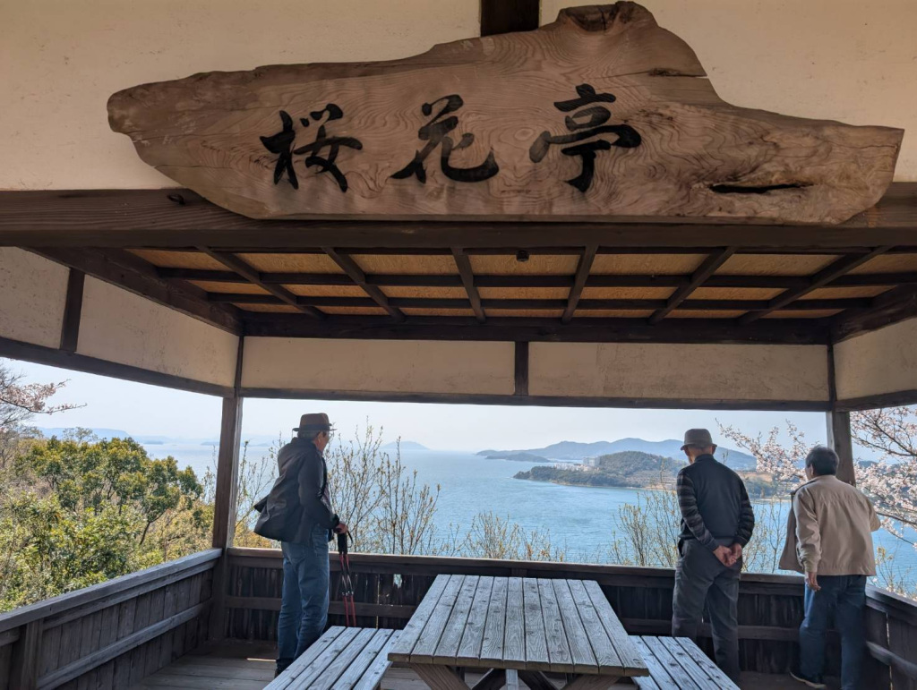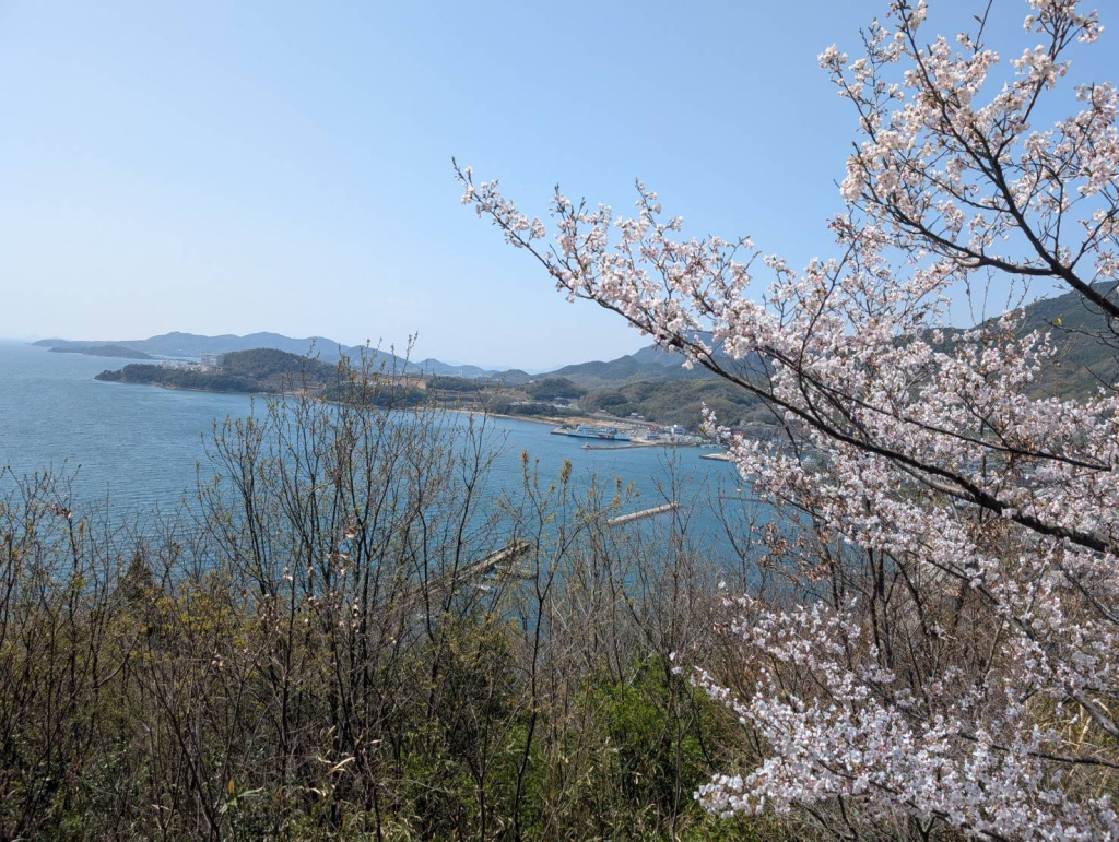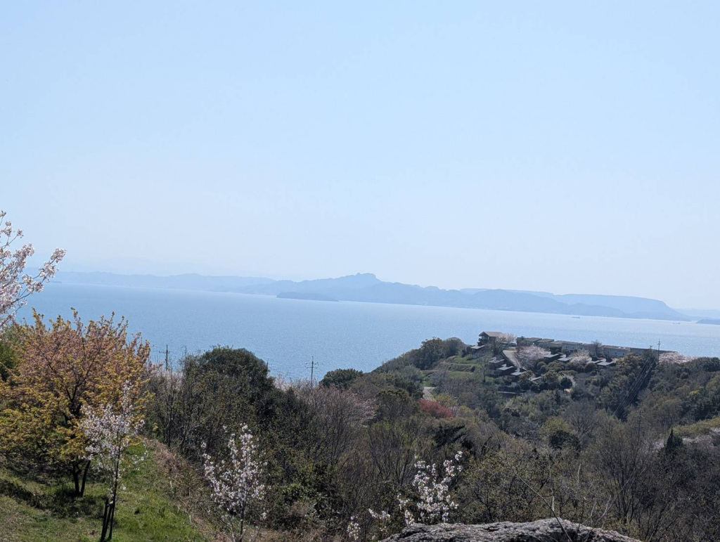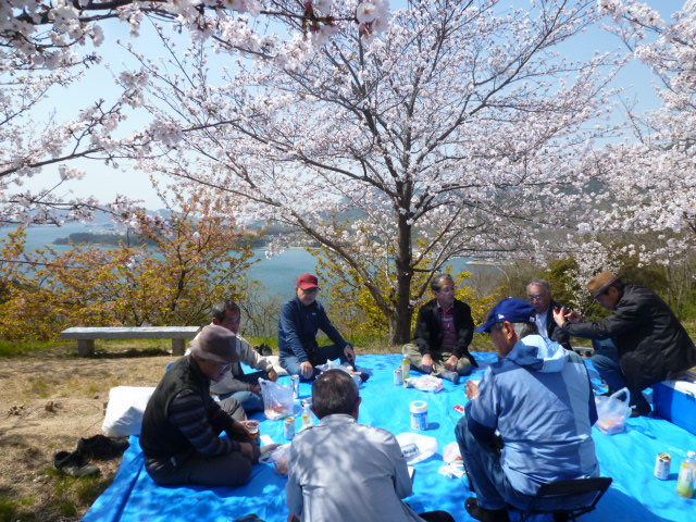 - 花見会場から見る瀬戸内海と桜のコラボ風景