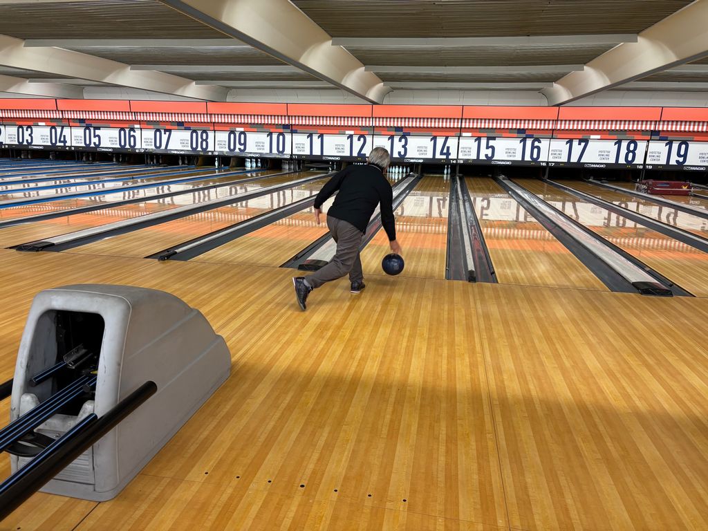 今年最後の月例会になりました。早いもので、発足して第32回を迎えますが誰一人脱会者もなく健康ボウリングを実施できることが大きな喜びです♬ 10分間の練習ボールを開始しました。浅海さんがストライク連発で優勝の予感が!