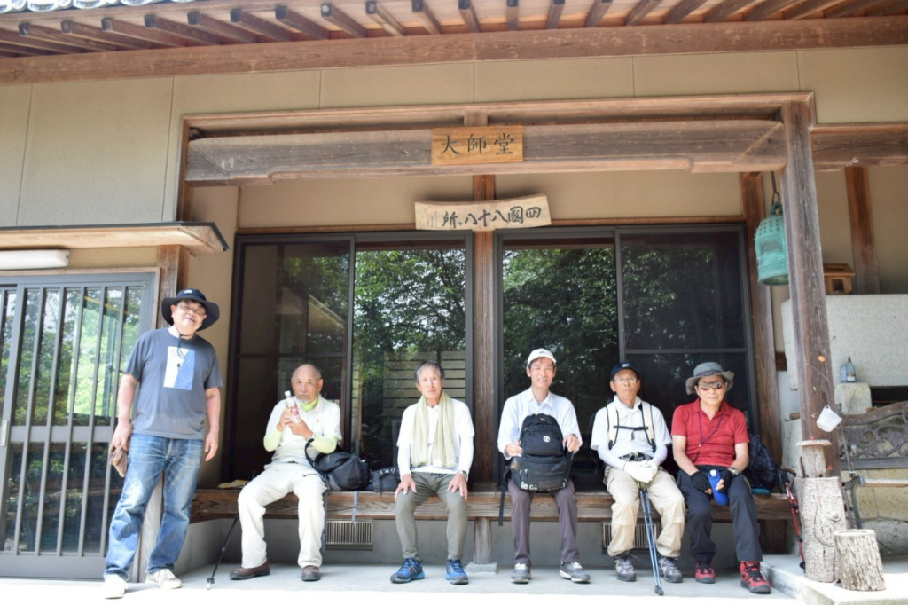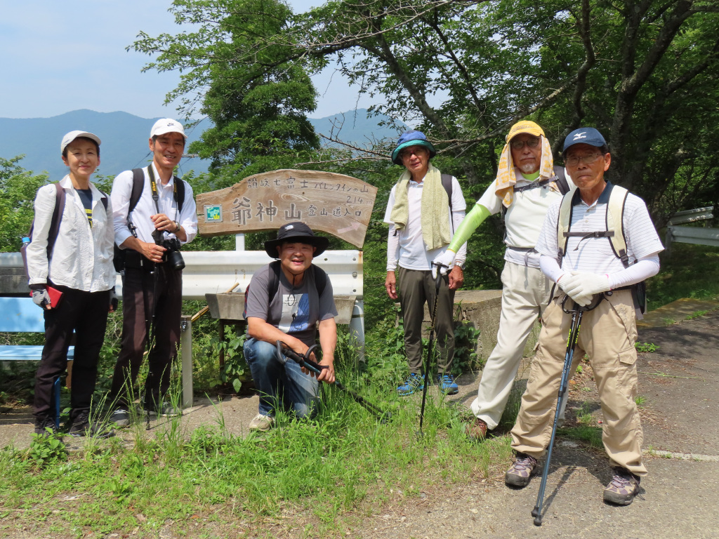 マルヨシセンター高瀬店に10時に集合して 世話役の先導で車移動し 大師堂登山口より登山標高差147mの爺神山にチャレンジです。整備されたジグザグの急坂を登ること25分!