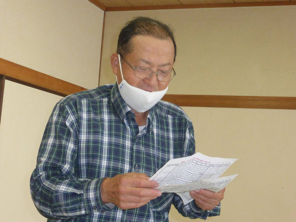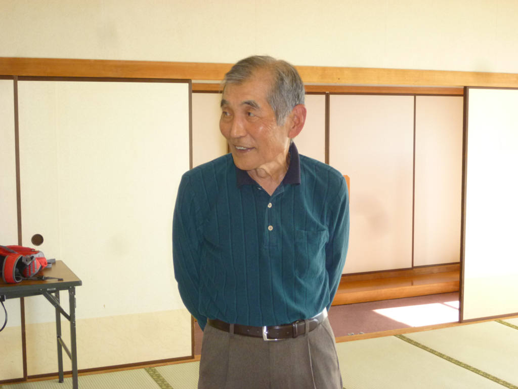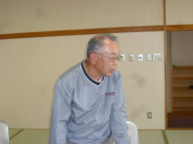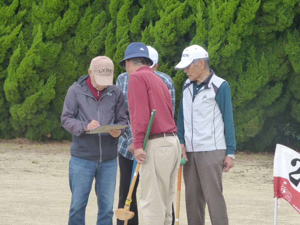 ①グランドゴルフ世話役高本さんより競技実施要領の説明