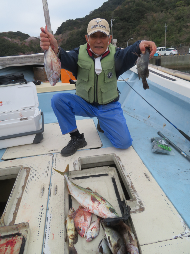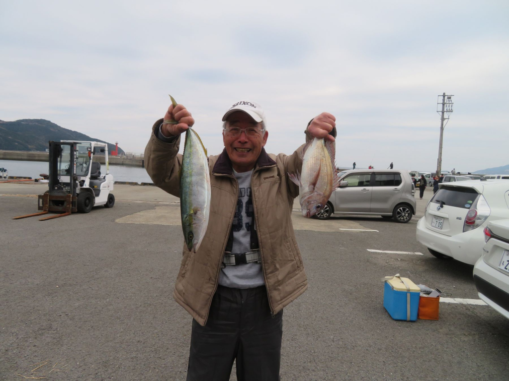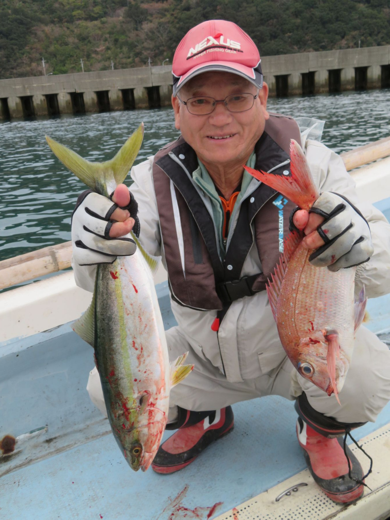 杉本さんが鯛二尾、ハマチ二尾、メバル二十尾超え