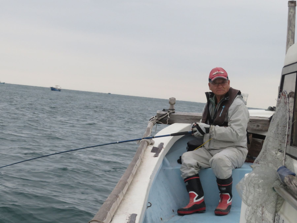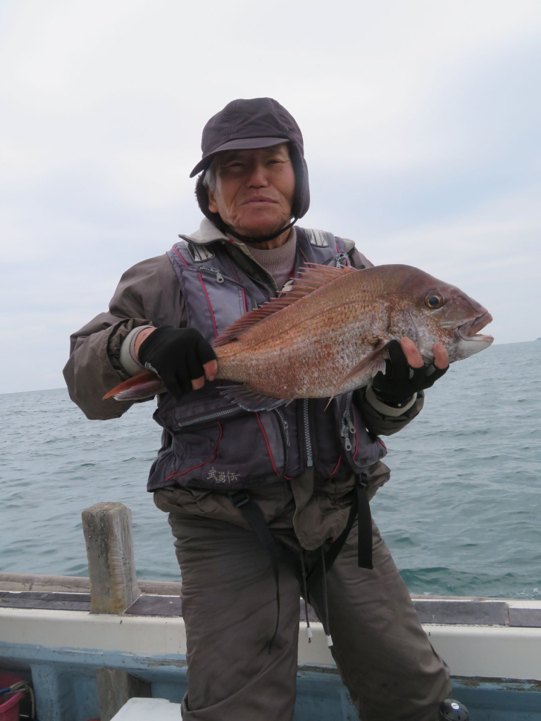 最初は鯛狙いで期待を込めて第一投。しばらくして三木に鯛がくる。