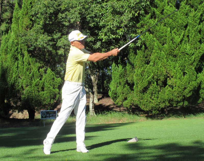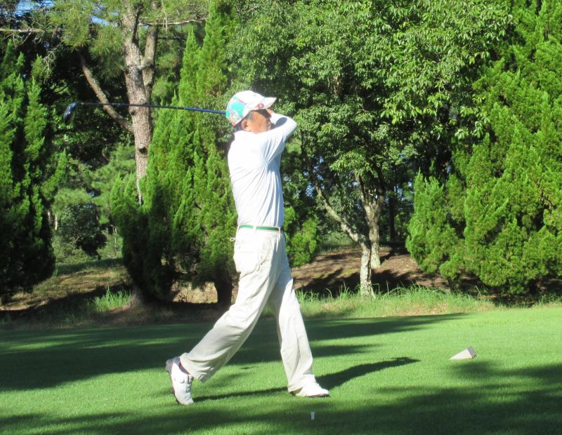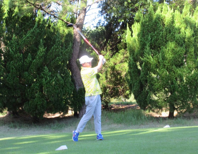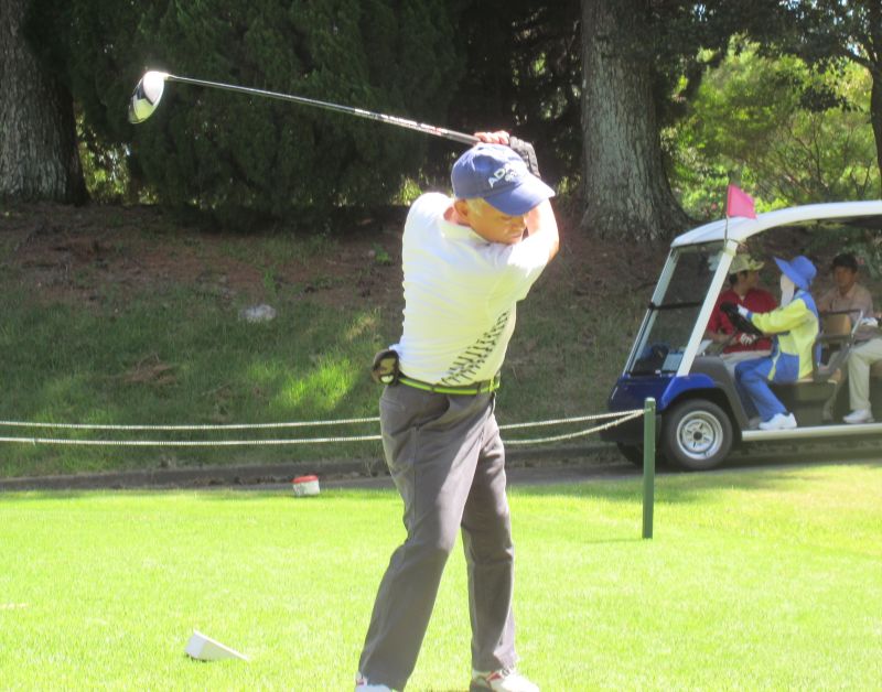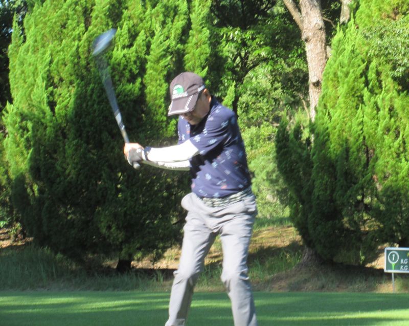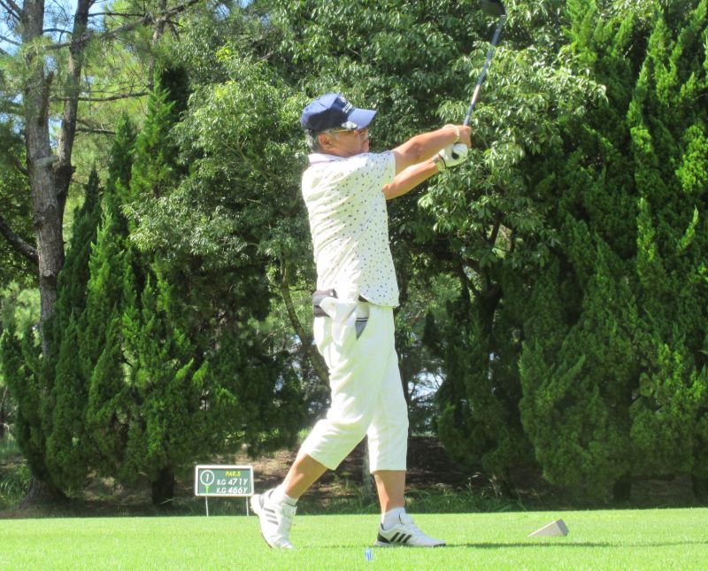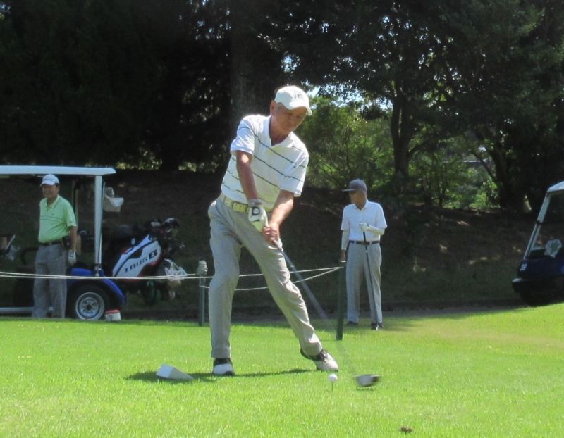 - OUT1番 ティショットを放つ高木(修)さん