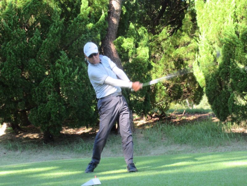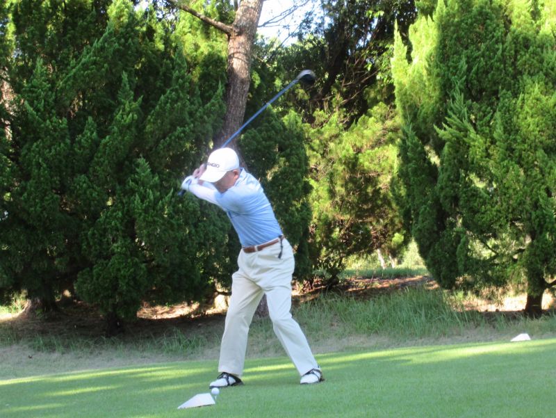 - OUT1番 ティショットを放つ鈴木(剛)さん