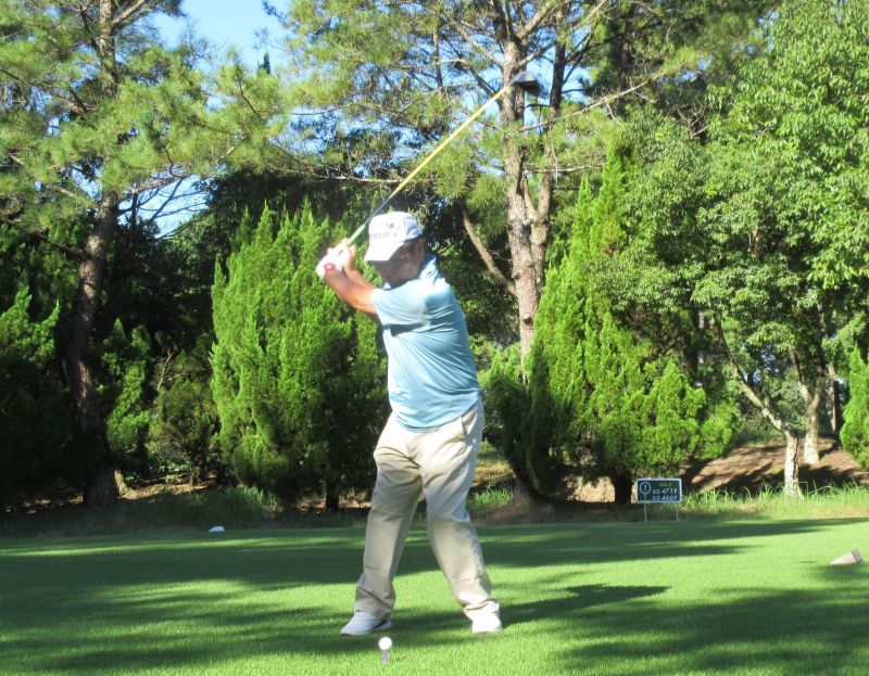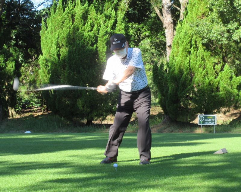 - OUT1番 ティショットを放つ高木(善)さん