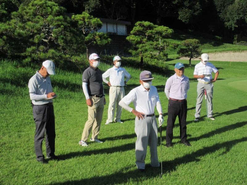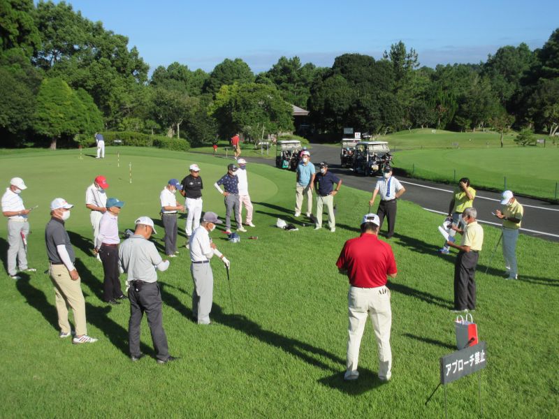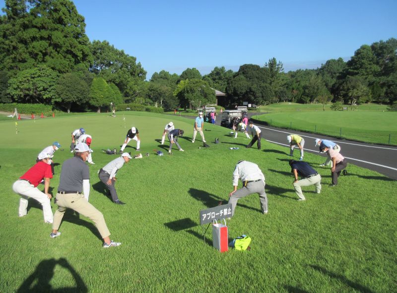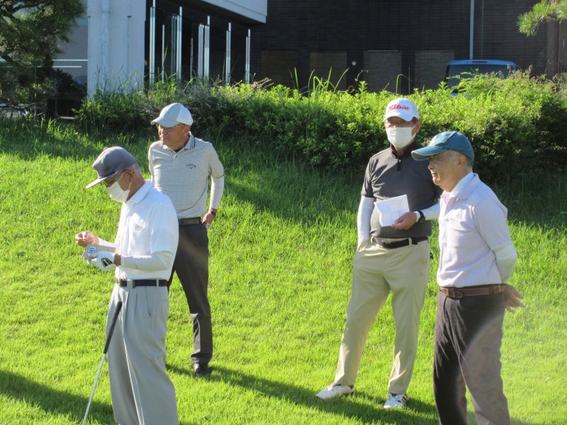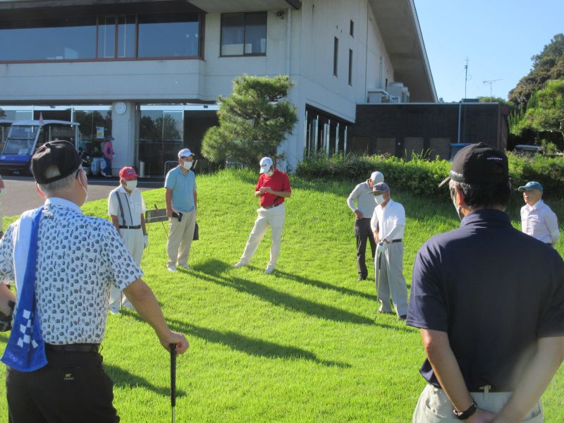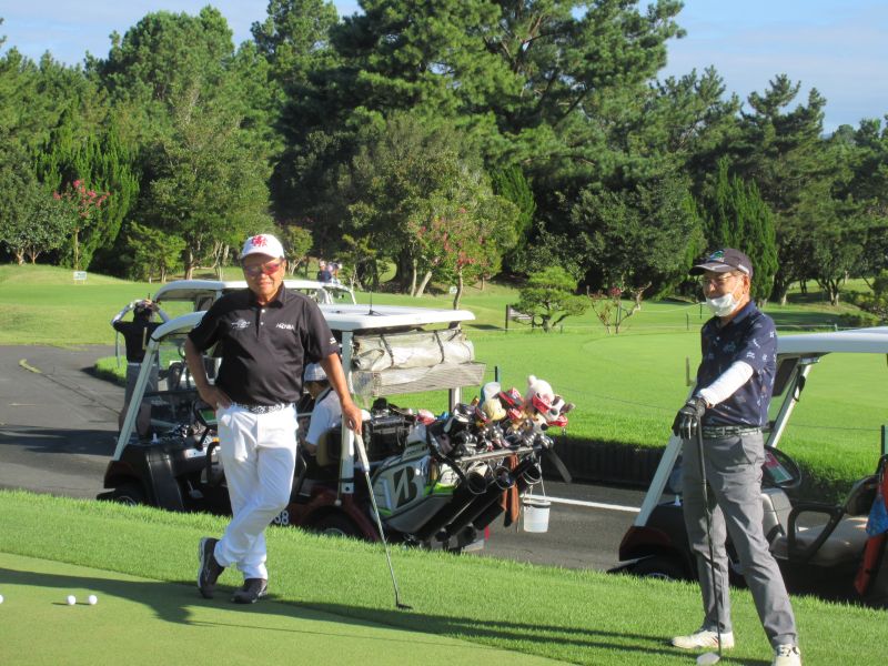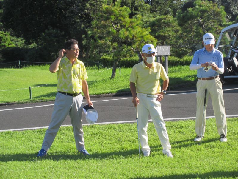 当日は、台風の影響も受けず、雲一つない青い空に風も少ない絶好のゴルフ日和に参加者は思い思いに久しぶりに顔を合わす仲間との談笑に練習も忘れていた。