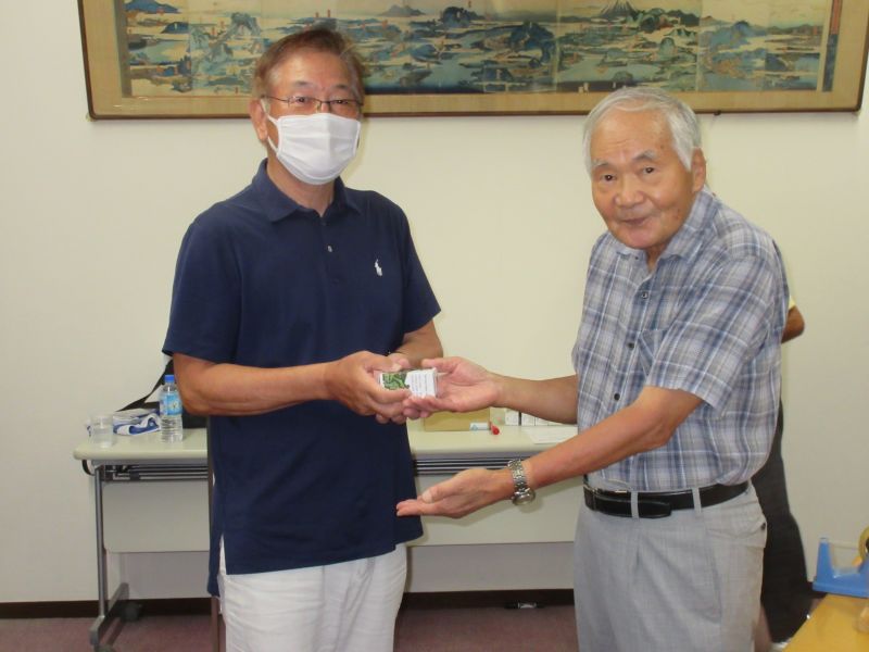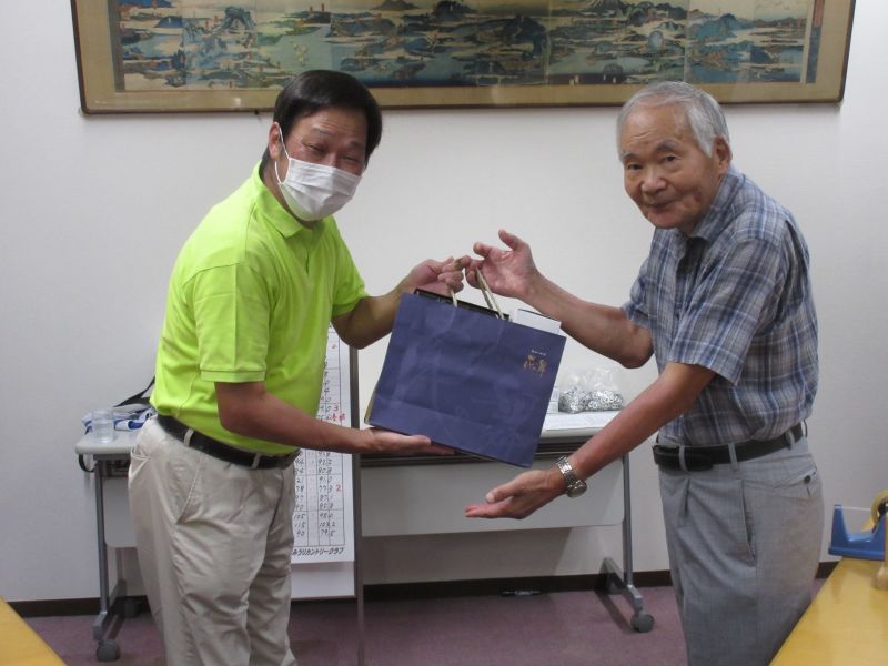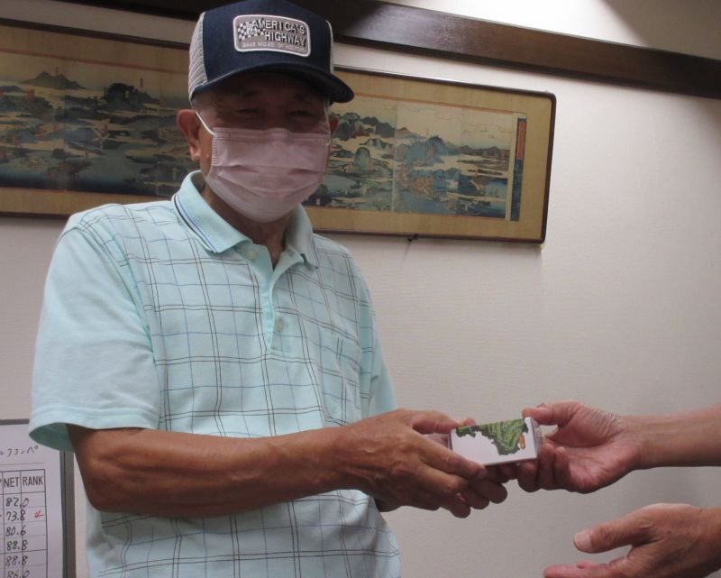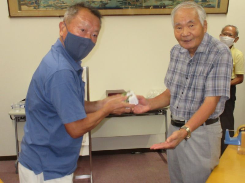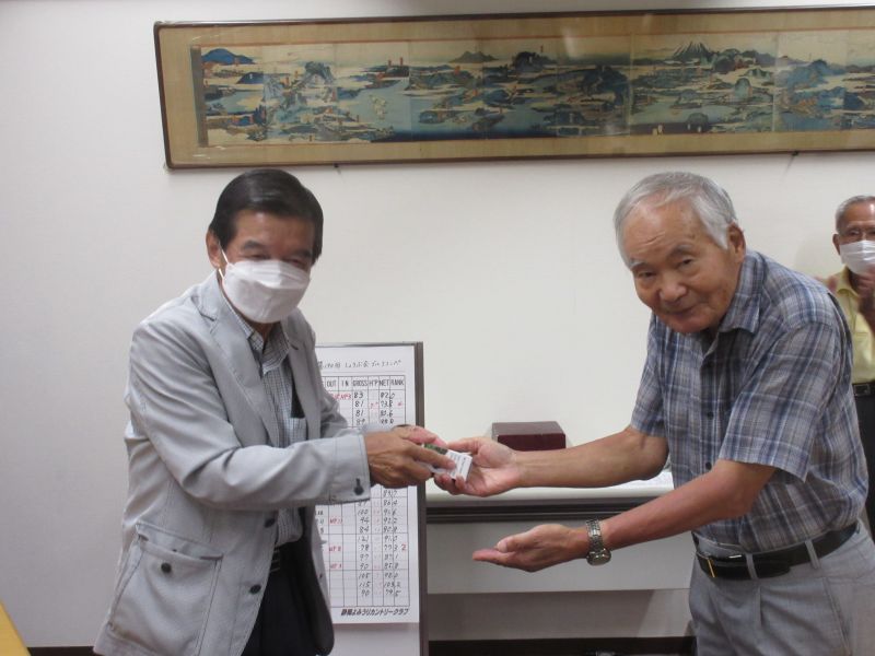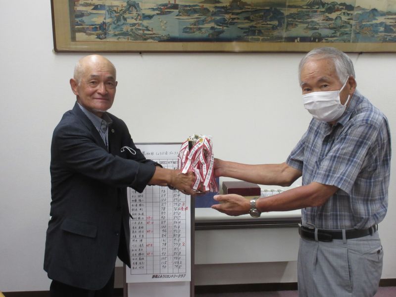 - 並松会長から優勝カップを受ける鈴木(剛)さん