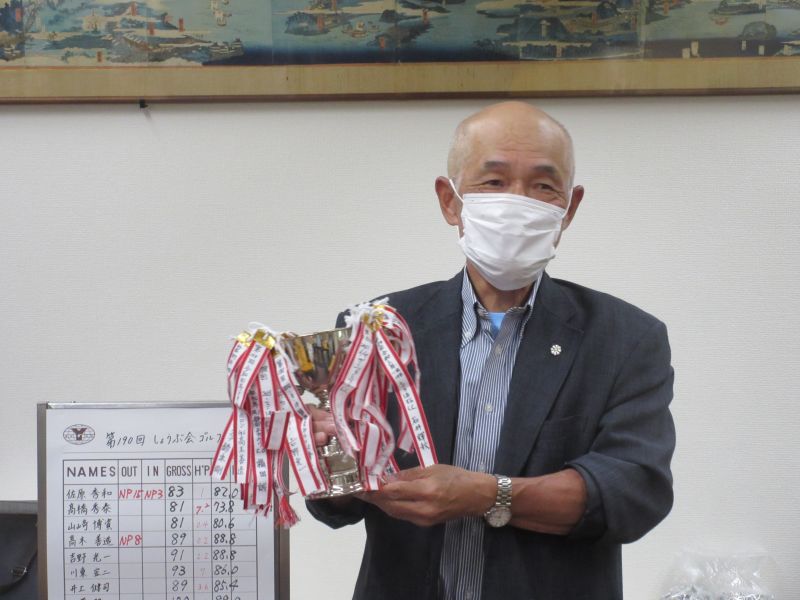 結果は、初参加の高橋さんが優勝スコアだったが、しょうぶ会では参加3回までは入賞から外れるため繰り下げ4位となり、鈴木(剛)さんが繰り上げ優勝、準優勝に川上さん、3位:松浦さんが入賞となった。優勝の鈴木さんは、天気と、パートナーに恵まれたおかげと言葉少なめのコメント。グロス70台は鈴木(剛)さんと川上さんの2人だけだった。