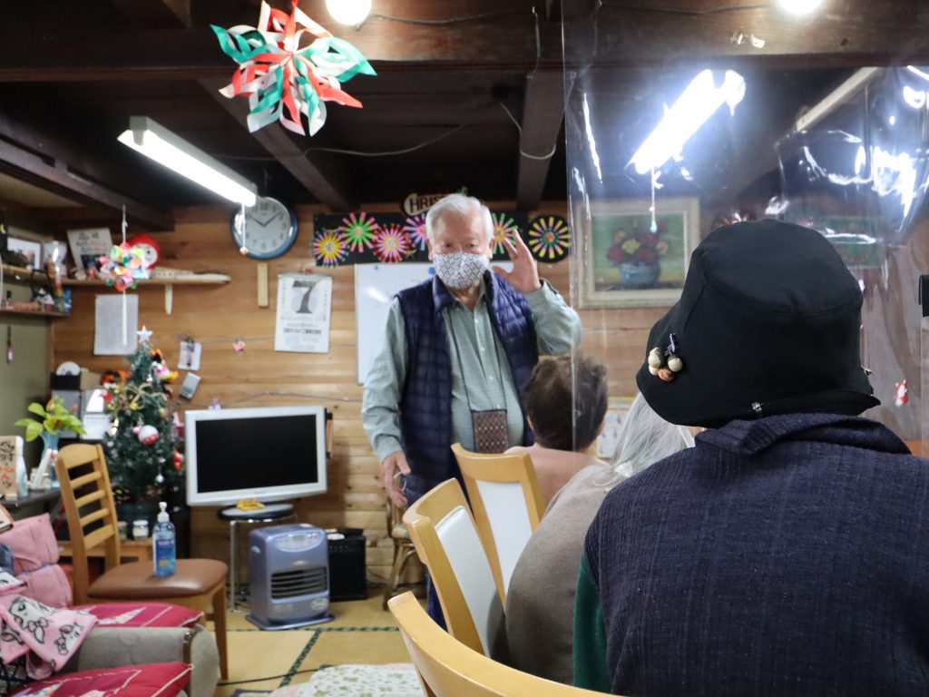 朝の集い(歌声)、贈呈式、支部長の畑で育てた野菜の差し入れして、施設責任者より感謝の声を頂きました。施設の方と歓談して贈呈式は終わりました。
