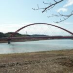 ■ 細江大橋:奥浜名湖と呼ばれるうちの東名高速浜名湖橋の奥(浜名湖の北東部)は「引佐細江」と、呼ばれる湾になっています。海からは遠いので、この辺りでは塩分も薄くなっています。この引佐細江に北部の山から流れ込む川が、都田川で合流する部分に架かるのが細江大橋です。細江大橋は旧細江町の市街の混雑解消と浜名湖周遊の短縮路として引佐細江と都田川河口の境界あたりに長さ200mで平成17年3月に開通しています。