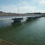 □ 堀川城址から再び自転車道に戻り、都田川の河口に架る最後の橋「細江大橋」へ向う。細江大橋を渡ってコンビニ店で買い物を終え、行きとは反対の細江大橋の左側の歩道を歩いて自転車道に戻る。