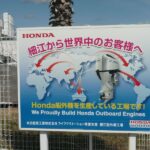 □ 都田川の河口から浜名湖湖畔沿いにあるホンダ細江サッカー練習場、ホンダ船外機工場、船外機完成品などを横目に昼食休憩場所へ向う。