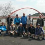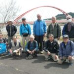 □ 浜松市北区役所前の横断歩道を渡り、都田川の右岸への坂道を上って行くと、浜名湖周遊自転車道に出た。浜名湖方面に行き、「澪つくし橋」の入口を通過して少し行ってから「澪つくし橋」を背にして集合写真を撮った。ひと息入れてから自転車と別れて「堀川城址」へ向った。